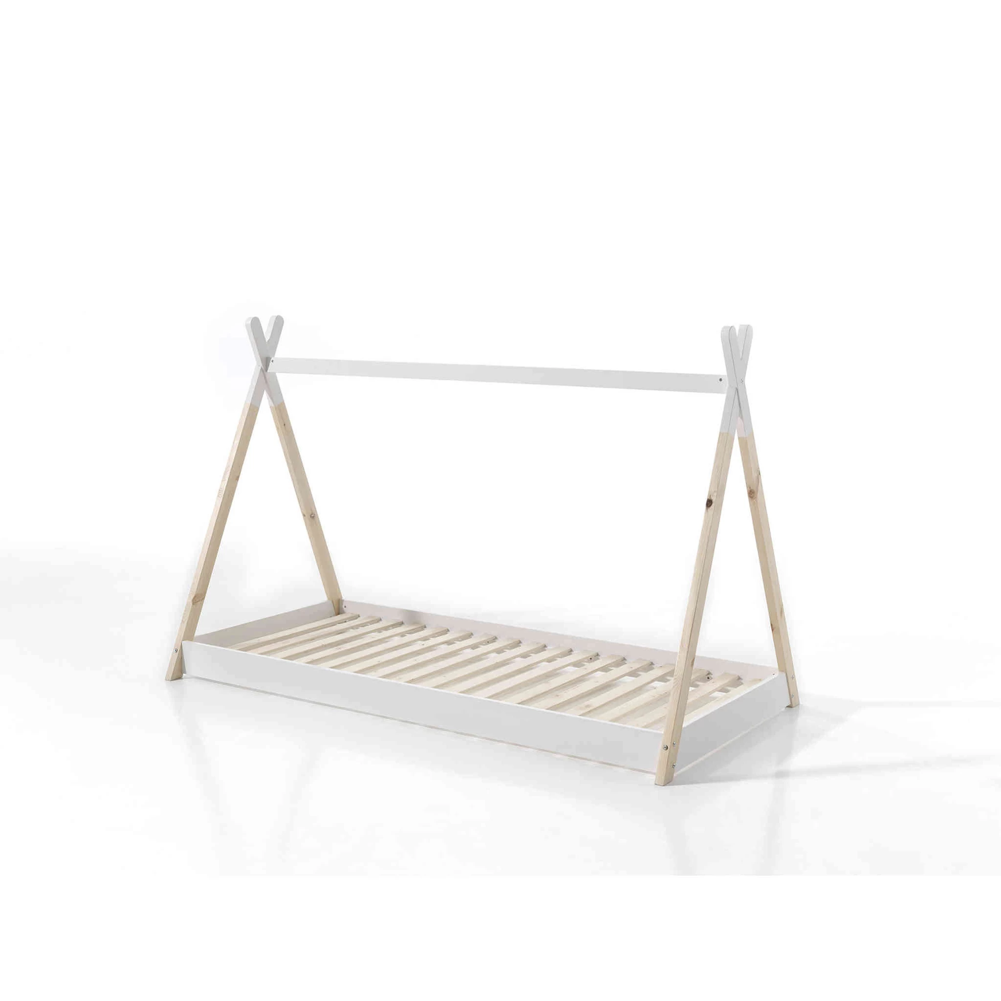 Lit enfant tipi en panneaux de particules recouverts de peinture aqueuse blanche. Il est prĂ©vu pour accueillir un couchage de taille 70×140 ou 90×200 cm. Le sommier Ă lattes en bois multiplis est fourni, cependant le matelas est vendu sĂ©parĂ©ment.