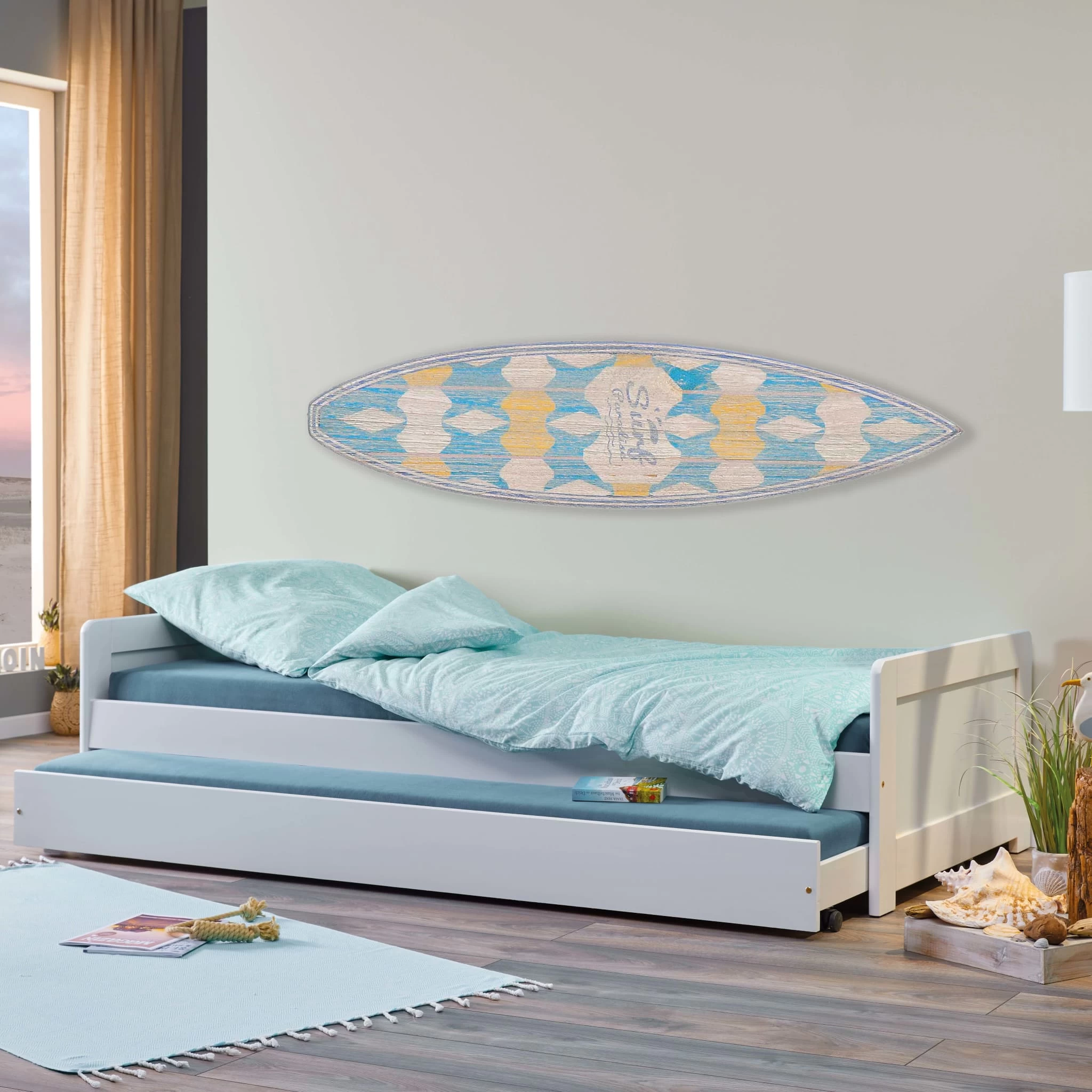 Le vernis naturel ajoute une touche élégante et moderne tandis que la teinte de pin apporte de la luminosité à la chambre. Ce lit multifonction s’adaptera facilement à tous les types de décorations avec son style épuré et son coloris blanc. Le bois massif garantit robustesse et durabilité. Le lit principal possède un sommier à lattes et le tiroir, quant à lui, une plaque MDF. Ce lit enfant est un choix fonctionnel et pratique pour tous ceux qui cherchent à optimiser leur chambre sans pour autant sacrifier l’esthétisme