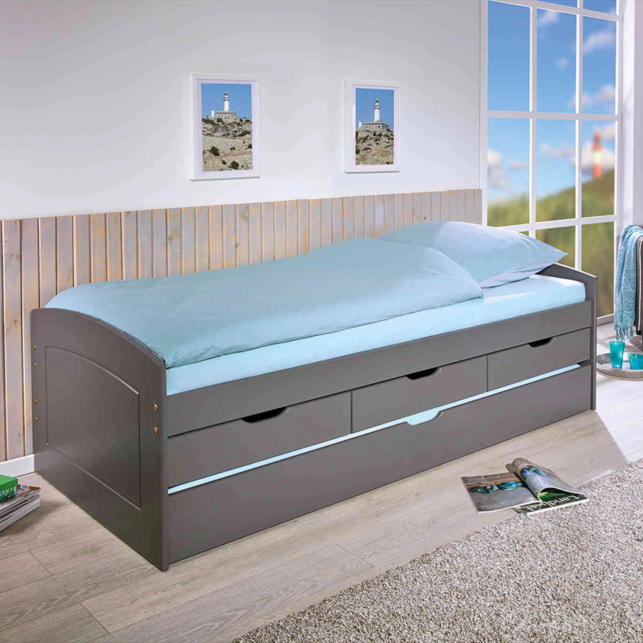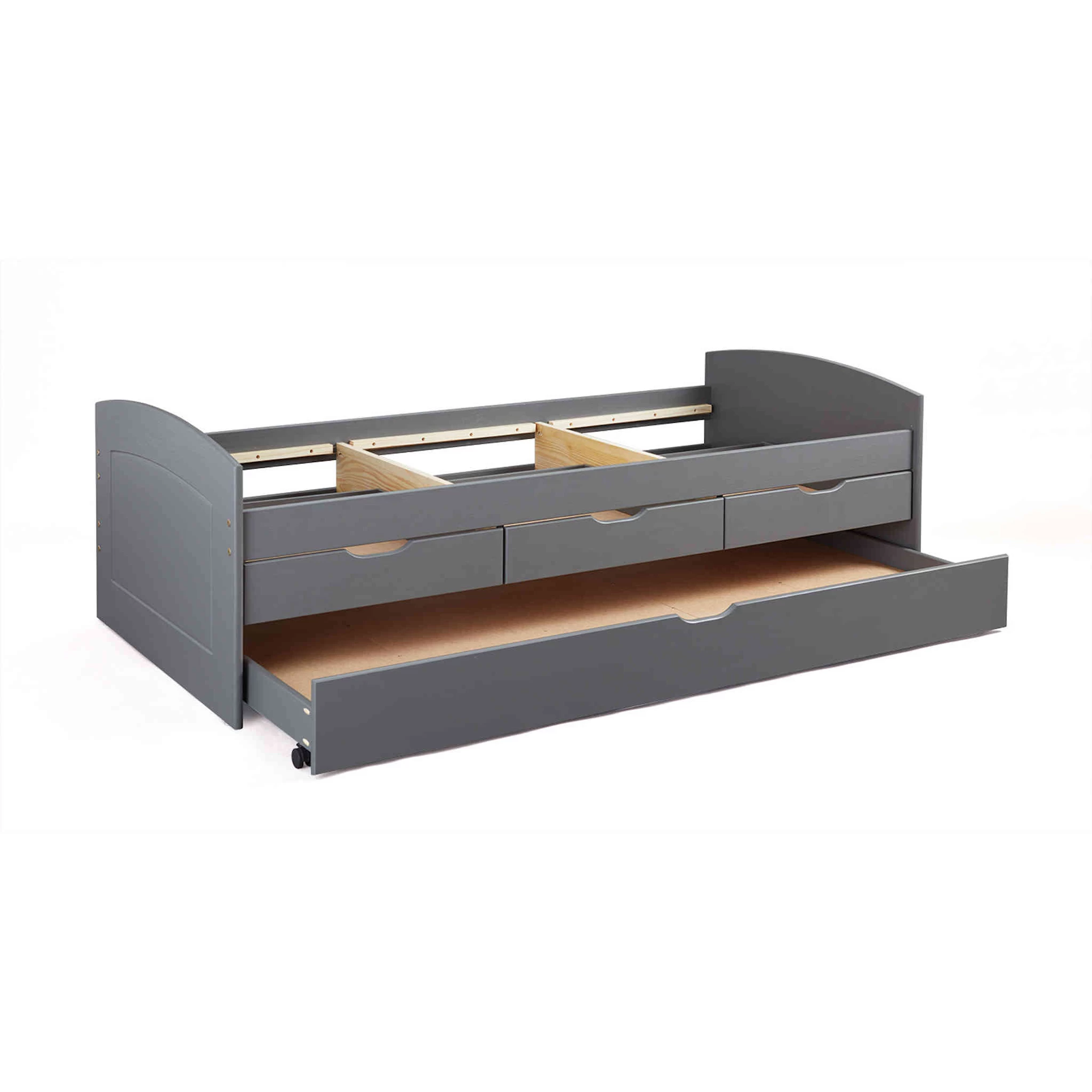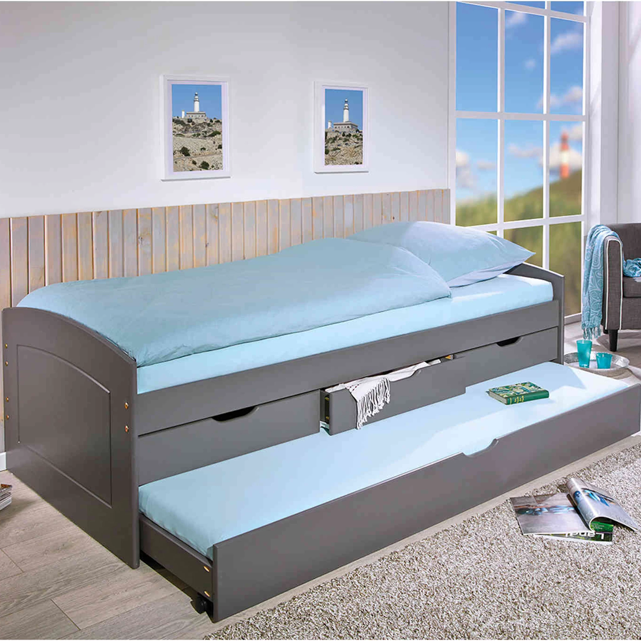 Lit gigogne avec tiroirs en bois massif gris 90×200 – LT12008