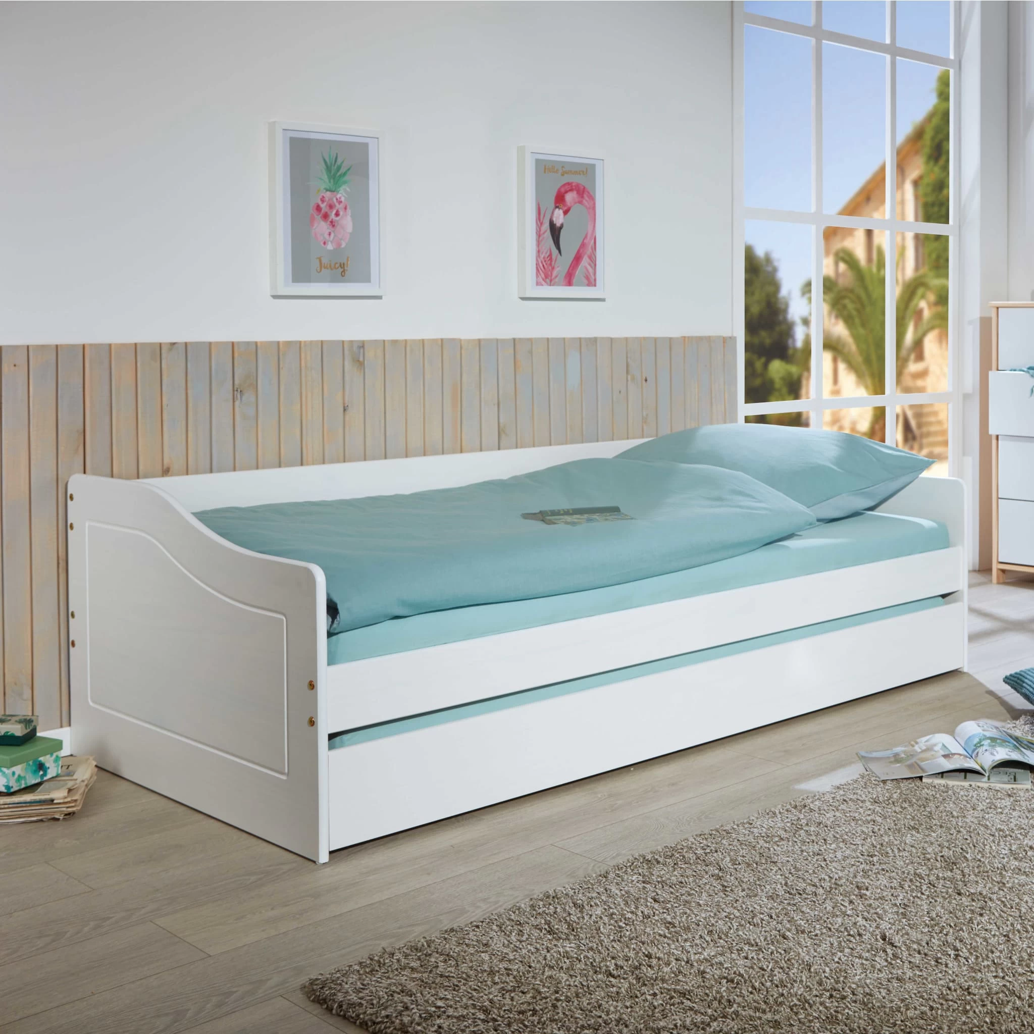 Le lit principal possède un sommier à lattes et le tiroir, quant à lui, une plaque MDF supportant la charge de 80 kg. Ce lit gigogne en bois massif est design et fonctionnel. Il est composé en pin massif avec une finition laquée incolore. Le bois massif garantit robustesse et durabilité.