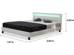 Un lit design, élégant et de haute qualité ! Le lit « Maria » est équipé de LED offrant 3 possibilités: rouge, vert et bleu qui peuvent être changés à l’aide de la télécommande qui vous est fournie.