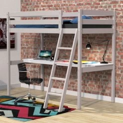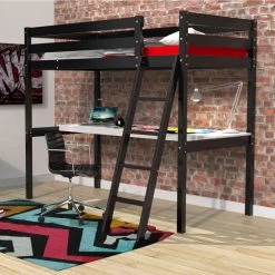 Lit mezzanine avec bureau en bois 90×190 – LT14038