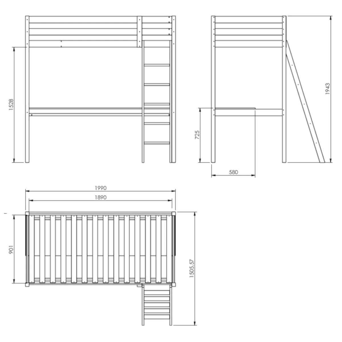 Lit mezzanine avec bureau en bois 90×190. Ce lit est un atout idĂ©al pour sublimer et amĂ©nager la chambre de votre enfant. Il possède une structure en bois massif qui lui apporte une grande rĂ©sistance dans le temps. Il possède une Ă©chelle Ă 4 barreaux pour accĂ©der au couchage en toute sĂ©curitĂ©. L’Ă©chelle peut ĂŞtre placĂ©e Ă droite ou Ă gauche selon vos envies. L’espace sous le lit est complĂ©tĂ© par un bureau sur toute la longueur du lit pour ĂŞtre Ă l’aise et avoir tout Ă portĂ©e de main lorsque votre enfant fait ses devoirs.