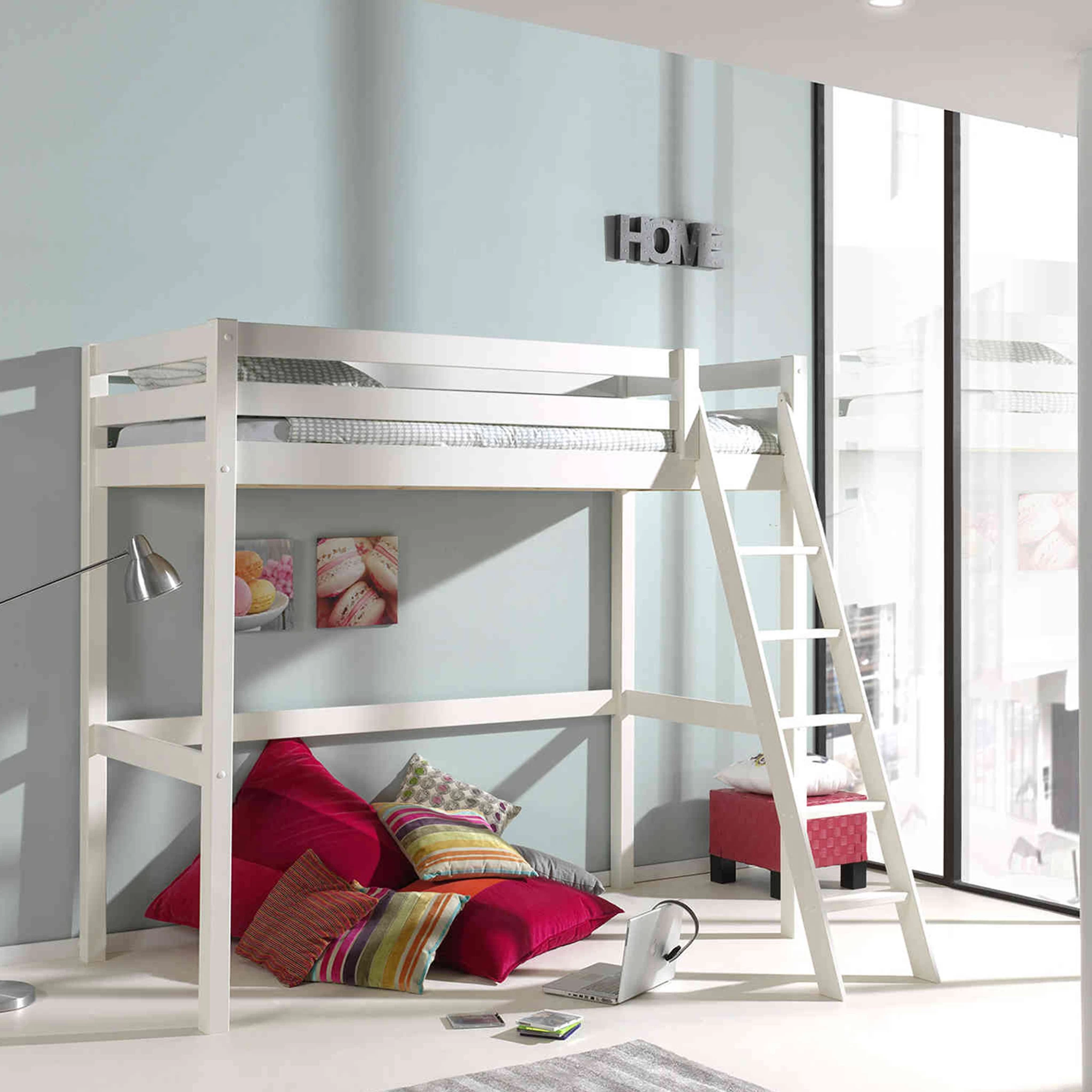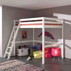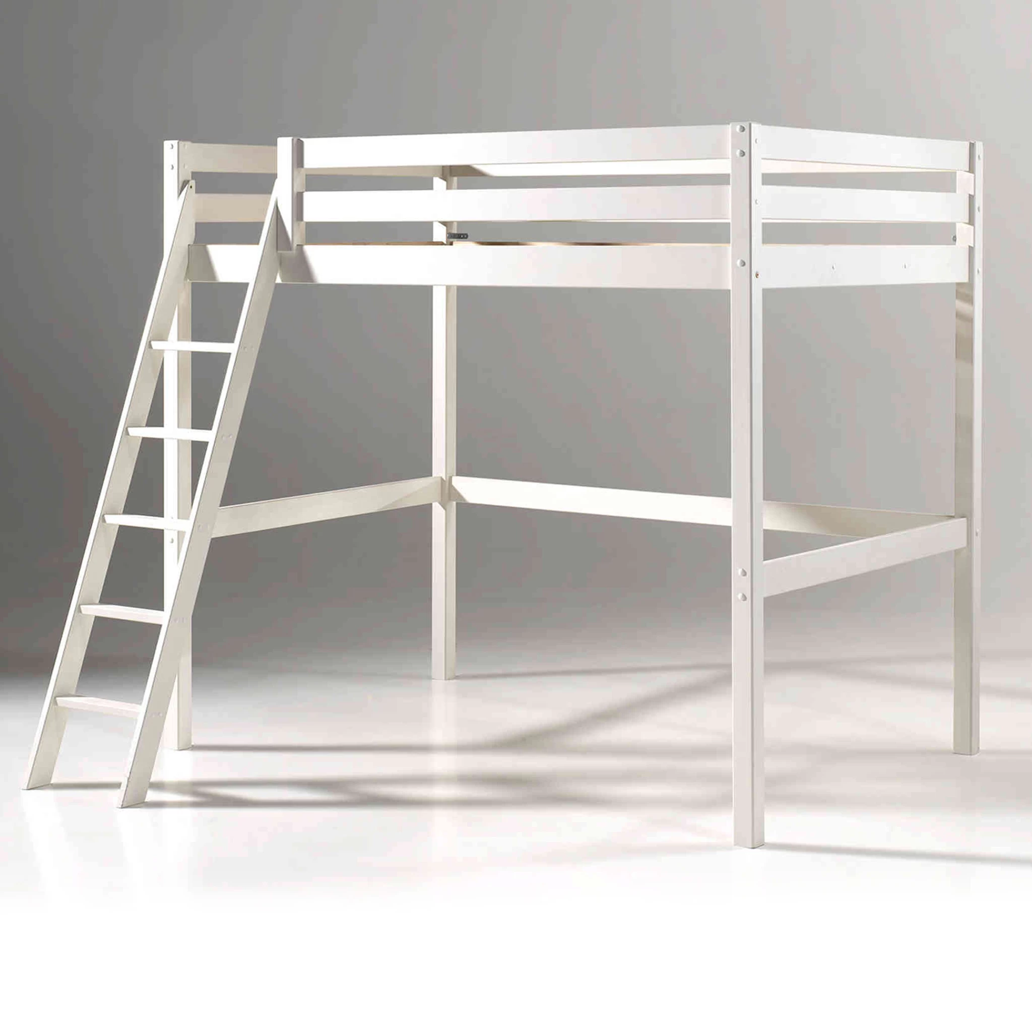 Lit Mezzanine constituĂ© de pin massif de couleur Blanc LaquĂ©. Il est prĂ©vu pour accueillir un couchage 90×200 ou 140×200, le sommier Ă lattes est inclus en revanche le matelas est en option, vendu sĂ©parĂ©ment. Nous vous conseillons un matelas d’Ă©paisseur 20 cm maximale. GrĂące Ă sa hauteur, ce lit mezzanine permettra de faciliter le rangement de la chambre de votre enfant en plaçant en dessous de celui-ci ses coffres de rangement, ses caisses de jouet, … L’Ă©chelle permet Ă votre enfant d’accĂ©der Ă la partie supĂ©rieure du lit. Elle est composĂ©e de 5 marches plates et ses arrĂȘtes sont arrondies.