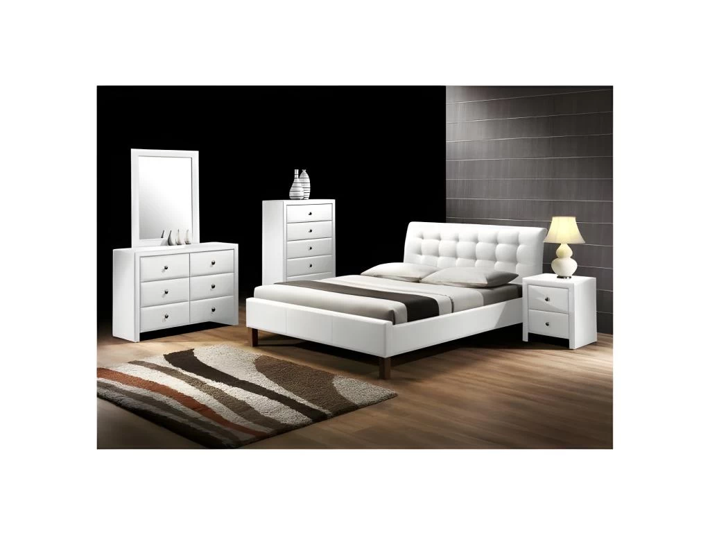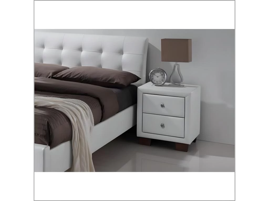 Vous désirez un meuble qui vous mette à l’aise dans votre chambre ? Ce lit pourrait vous satisfaire. Trouvez dans notre descriptif toutes les informations dont vous avez besoin à propos de ce lit. Un lit moderne Ce lit fait de cuir synthétique s’aligne parfaitement sur l’air du temps. Il vous permettra d’apporter une touche personnalisée et contemporain dans votre espace de vie. Avec sa couleur blanche, ce lit pourra sans difficulté s’associer à d’autres couleurs neutres ou vives. Un lit relaxant Ce lit de 2 places vous aidera à vite trouver le calme et la tranquillité bien à l’abri dans votre chambre. Confortable à souhait, il vous détendra de la tête jusqu’au pieds pour faire de vos moments de repos des vrais temps revigorants. Ce lit conviendra aussi bien pour votre propre chambre que celle d’amis. Un lit pérenne Les matériaux de qualité composant ce lit vous garantissent leur solidité et leur robustesse en tout temps. Le sommier à lattes est inclus, tandis que le matelas est optionne