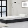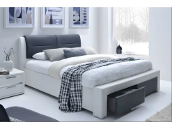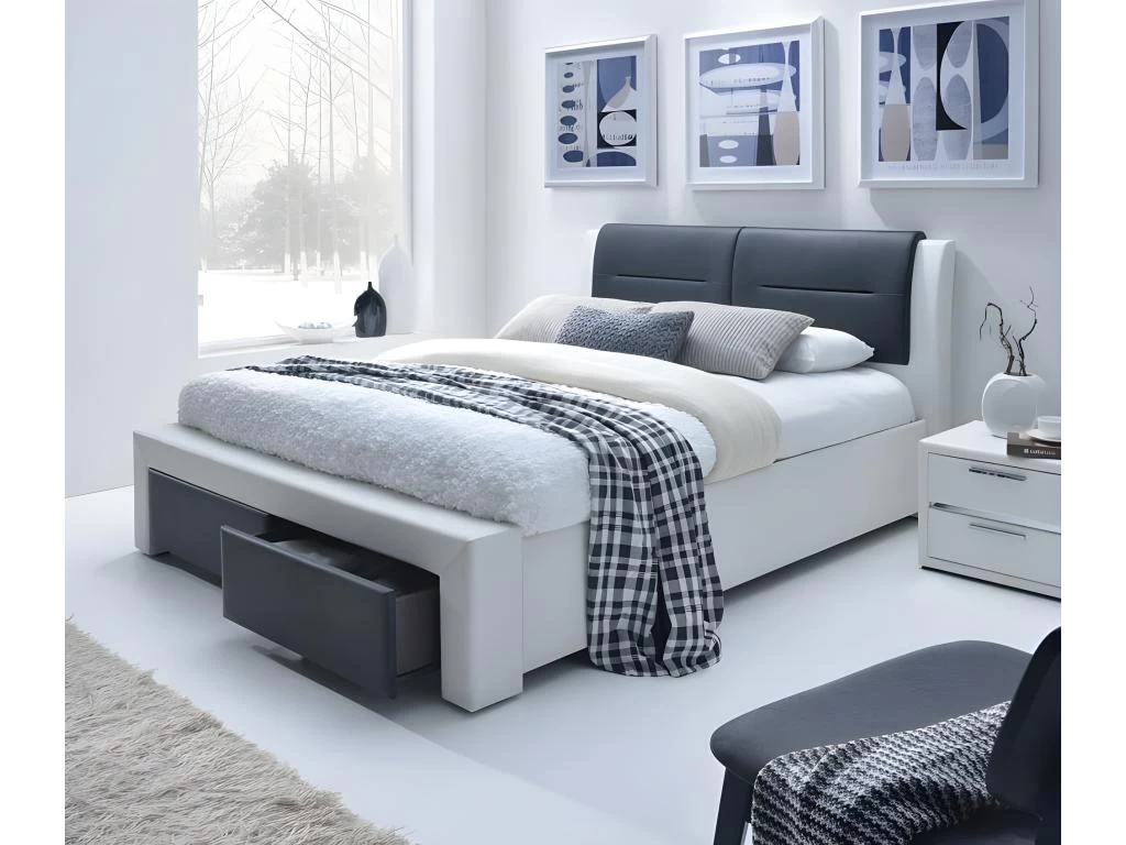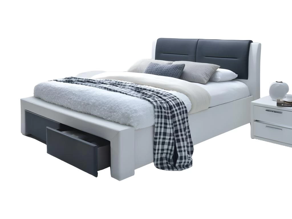 Ne perdez plus de place ! Avec ses 2 tiroirs encastrés, ce modèle de lit vous permettra de ne plus perdre de mètres carrés sous votre sommier. Vous pourrez ainsi y ranger vos livres, les jouets des petits ou encore les vêtements hors-saison pour gagner de la place dans votre dressing. Vous serez séduit par son design moderne. Le revêtement de ce lit en cuir synthétique donnera à votre pièce du cachet. De plus, son coloris contrasté noir et blanc viendra dynamiser votre chambre. Vous recherchez la qualité ? Vous pouvez compter sur son revêtement en cuir synthétique pour faire durer votre lit dans le temps. Cette matière robuste est aussi imperméable et stoppe l’humidité. C’est simple et rapide. Le lit est à monter soi-même. Une notice de montage vous explique clairement toutes les étapes d’assemblage. Des accessoires de montage sont inclus. Matériau : Cuir synthétique (revêtement) Dimensions et poids : Longueur : 225 cm Largeur : 152 cm Hauteur totale : 99 cm Poids : 90 kg Matelas non inclus – Sommier à lattes inclus