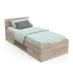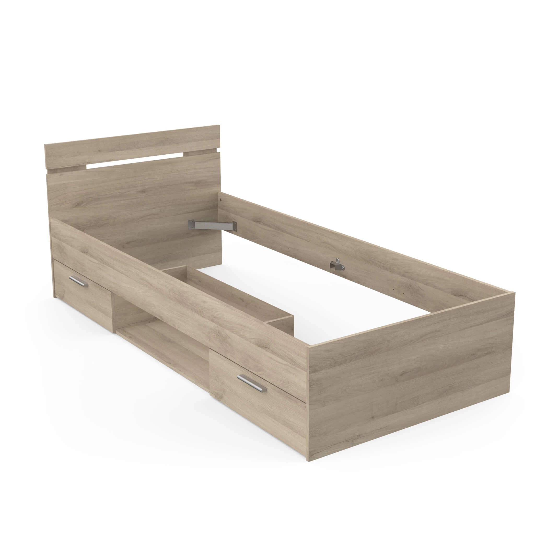 Lit tiroir avec niche de rangement en bois imitation chĂȘne