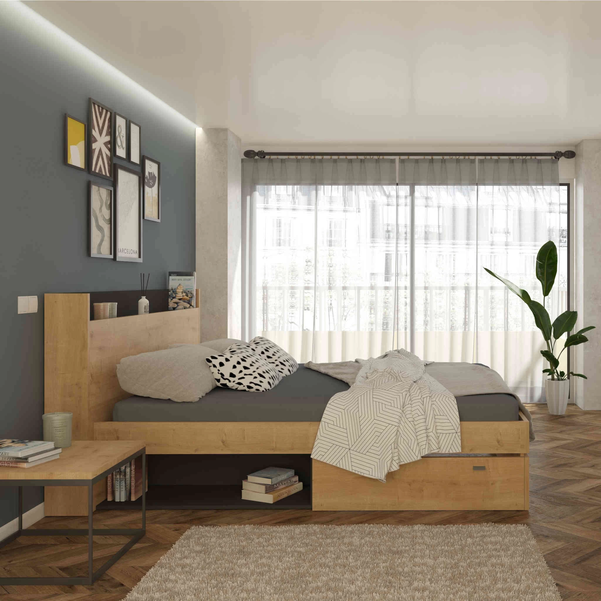 Lit tiroir en bois imitation chĂȘne – LI9051