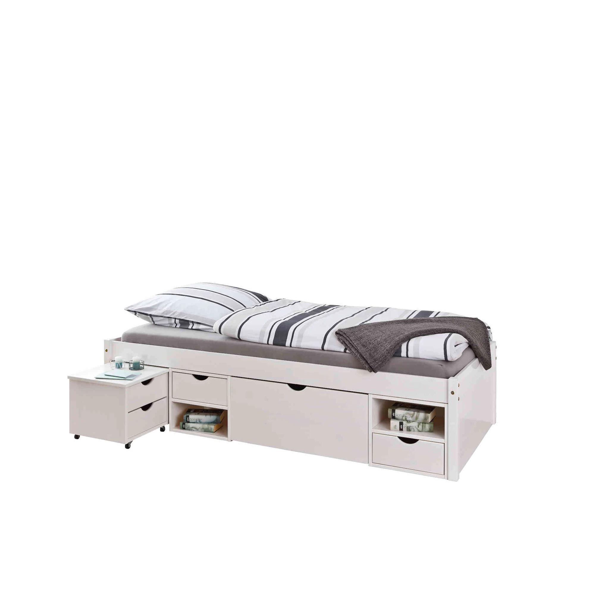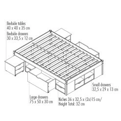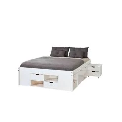 Lit tiroirs en bois massif blanc laquĂ© – LT12013