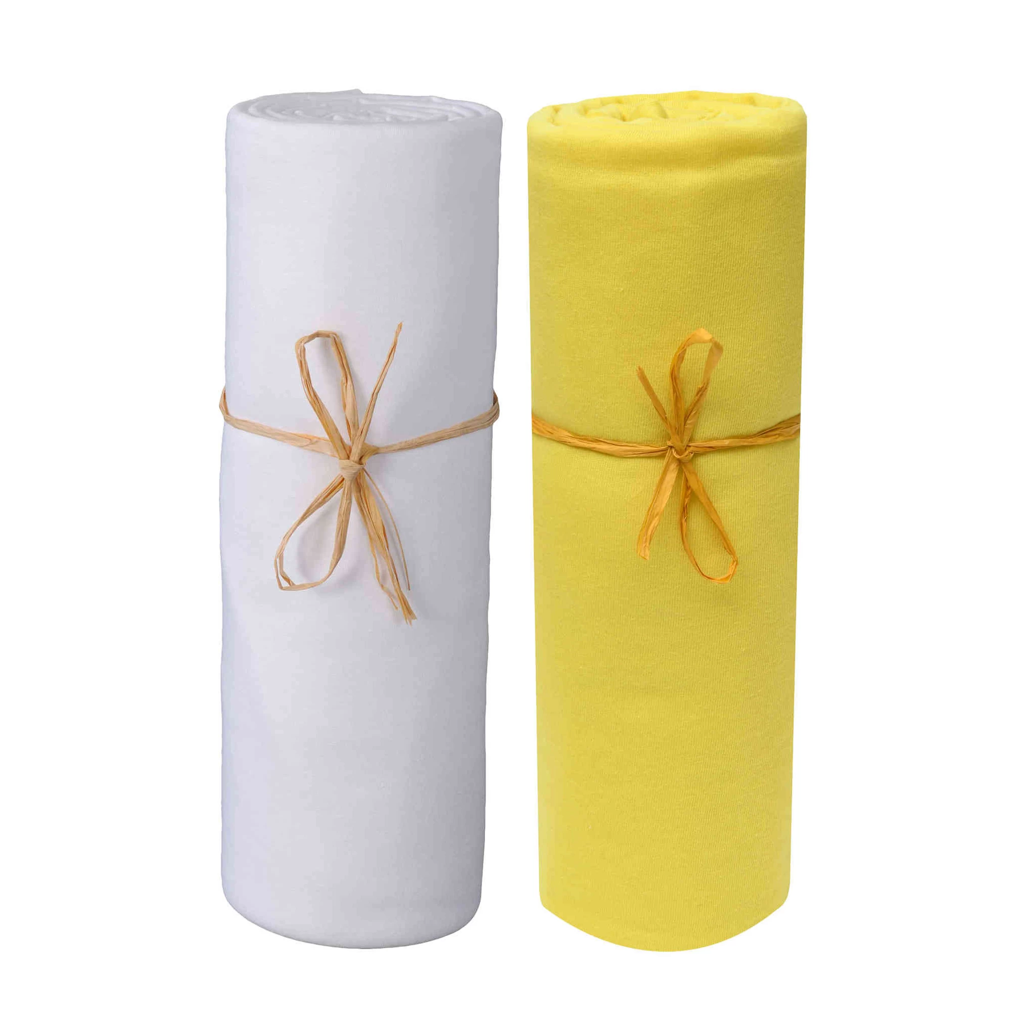 Lot de 2 draps housses bébé jersey bio blanc et jaune or