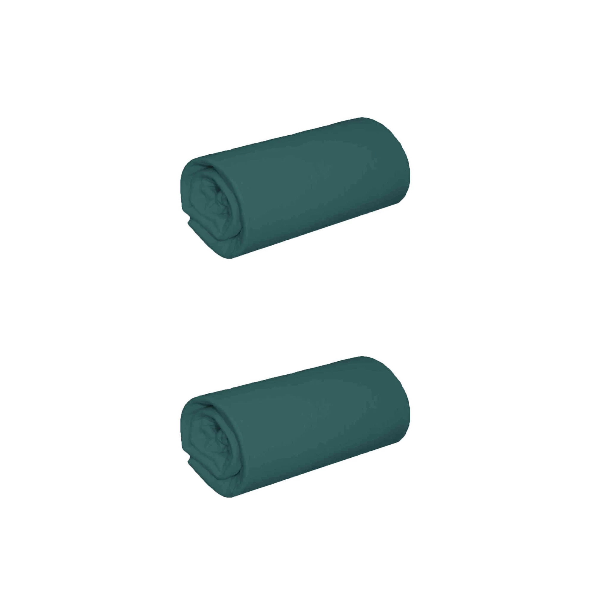 Lot de 2 draps housses jersey bleu canard bonnet 30 cm