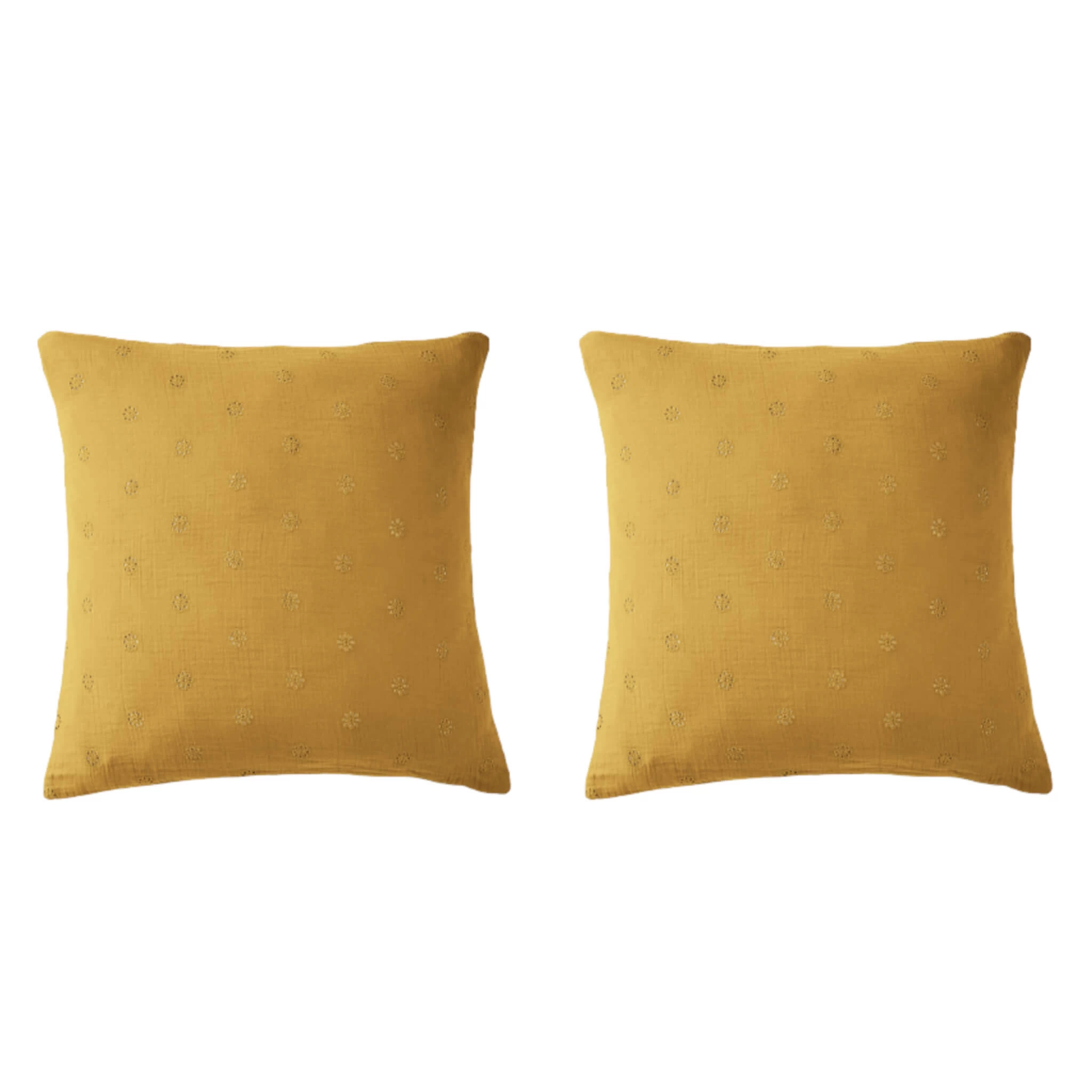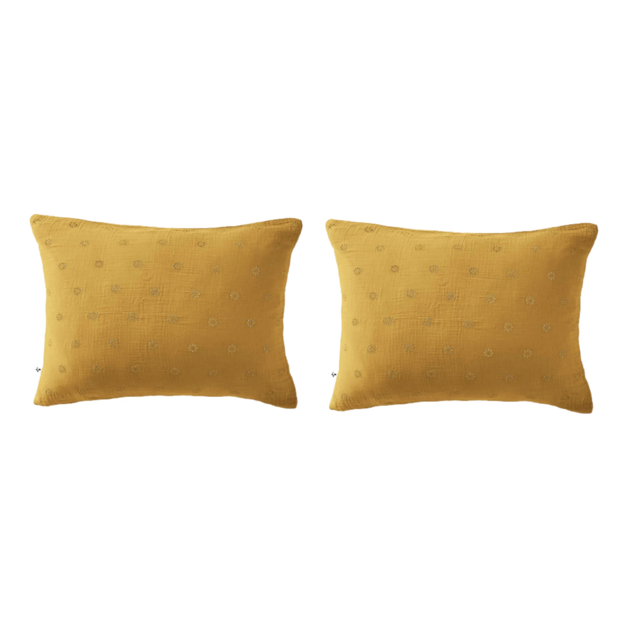 DĂ©couvrez le lot de 2 taies d’oreillers brodĂ©es double gaze de coton, de la marque Terre de Nuit.Â