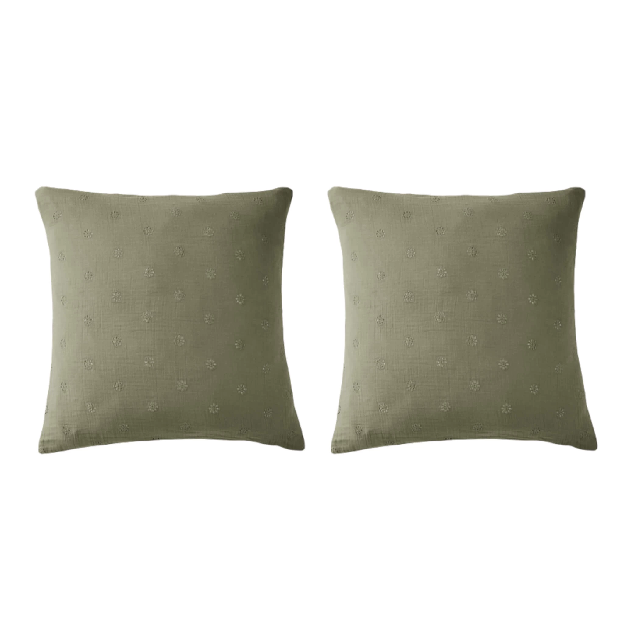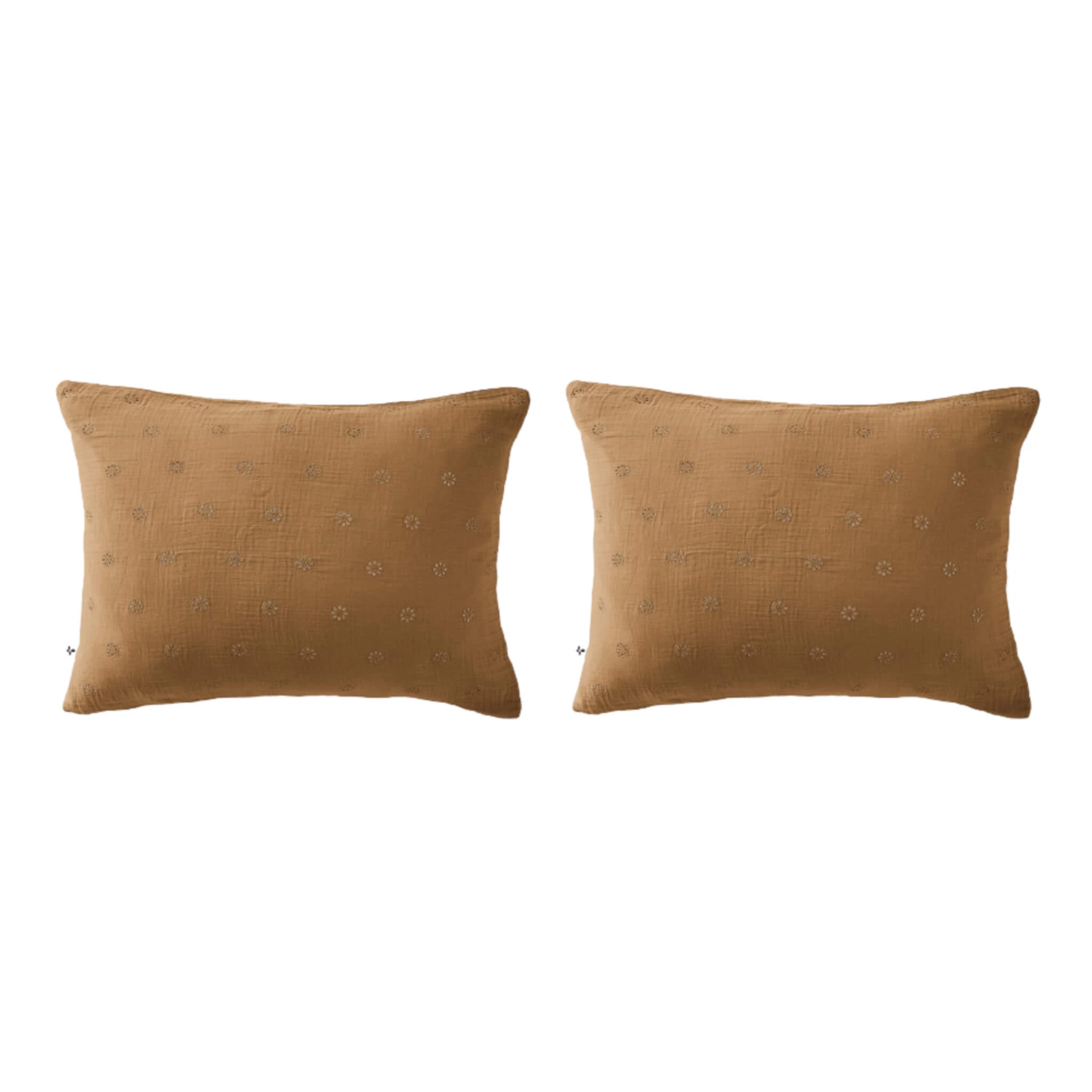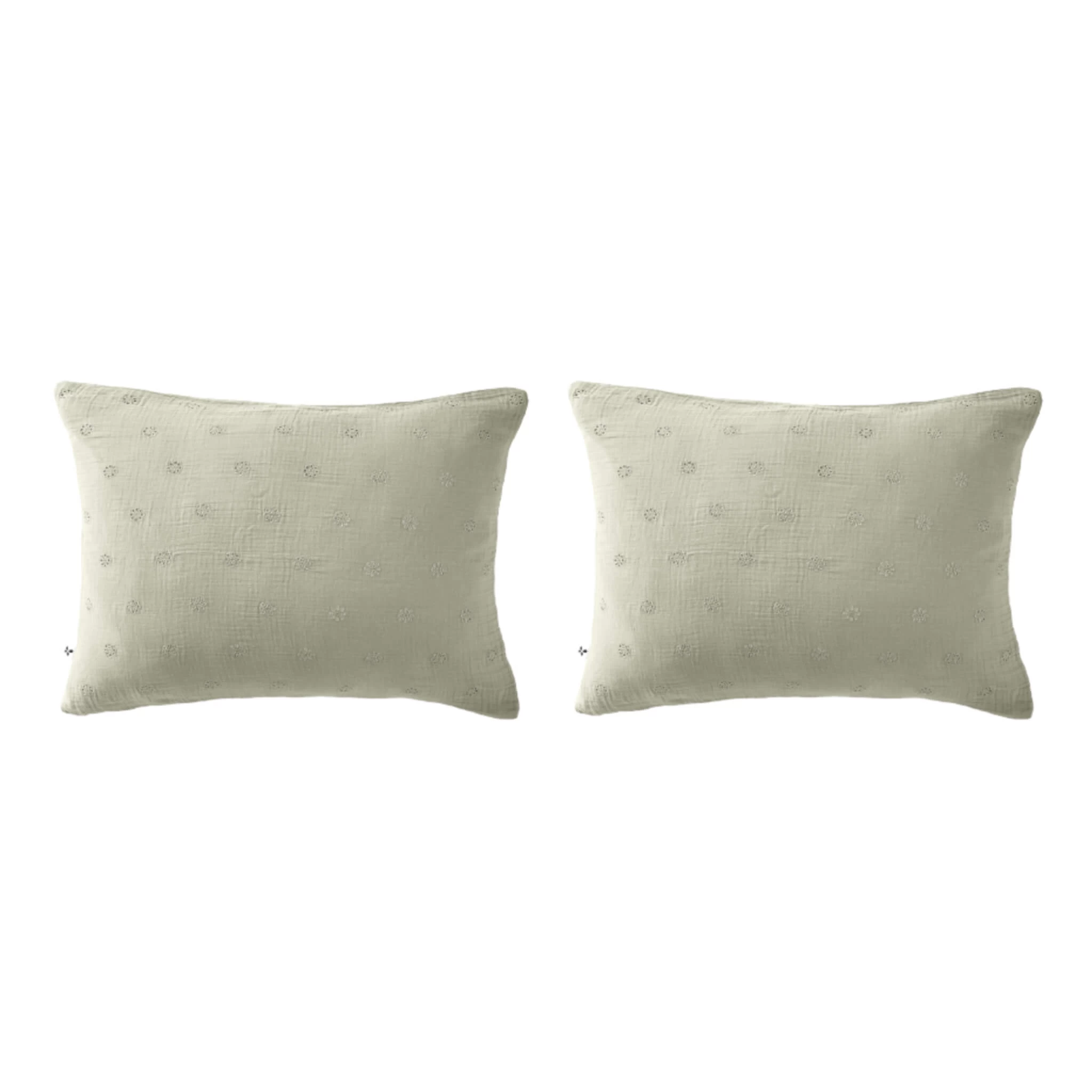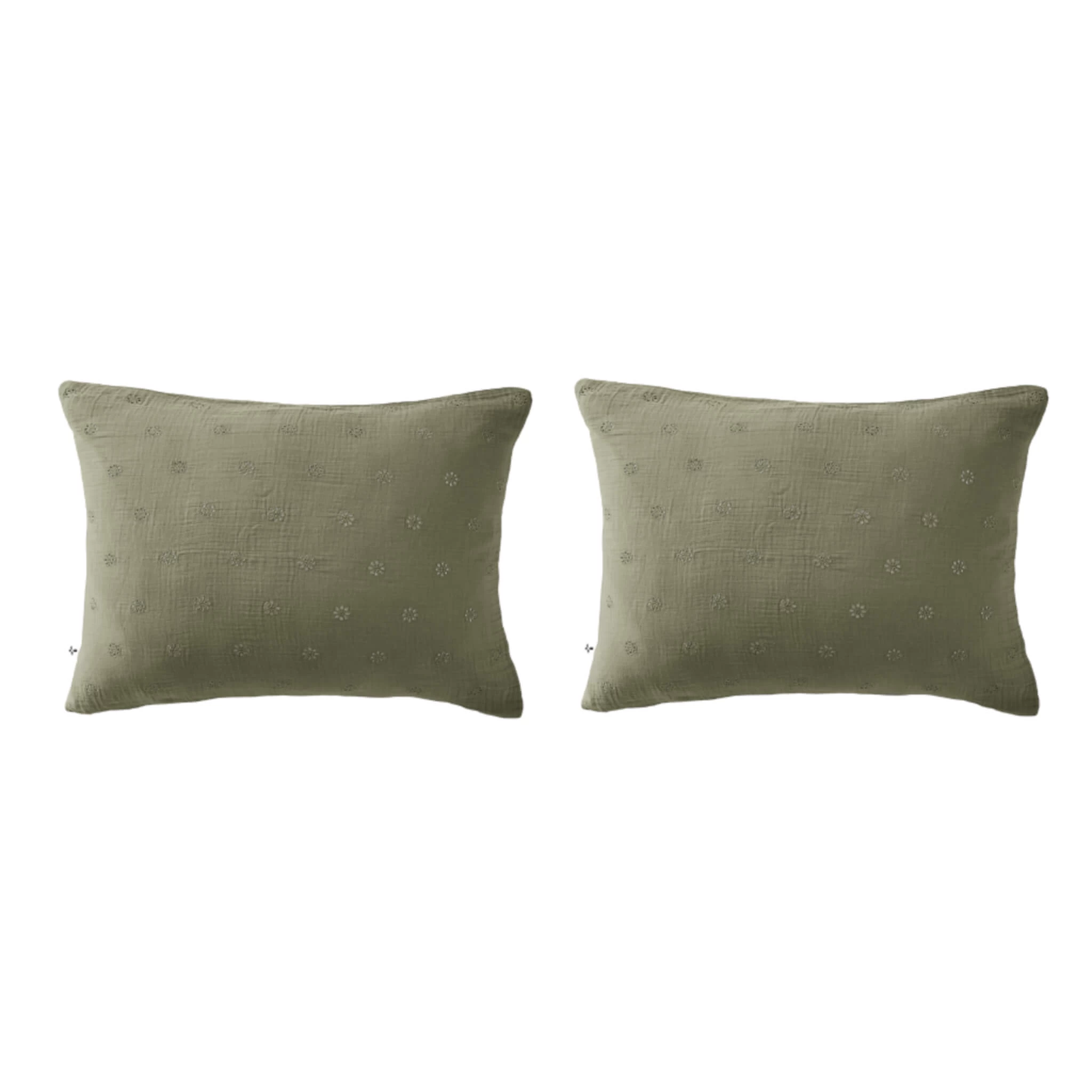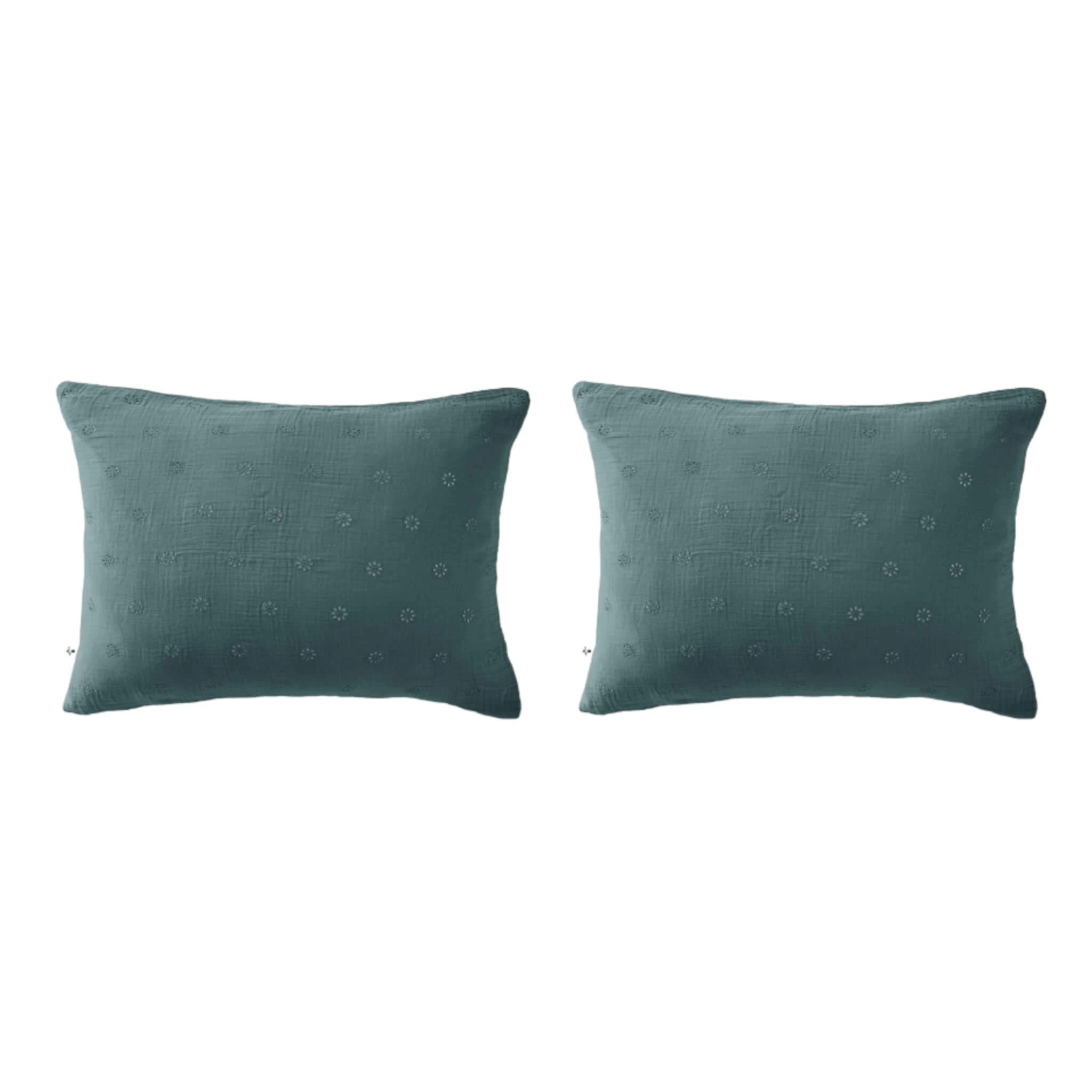 Lot de 2 taies d’oreillers brodĂ©es double gaze de coton – Terre de Nuit