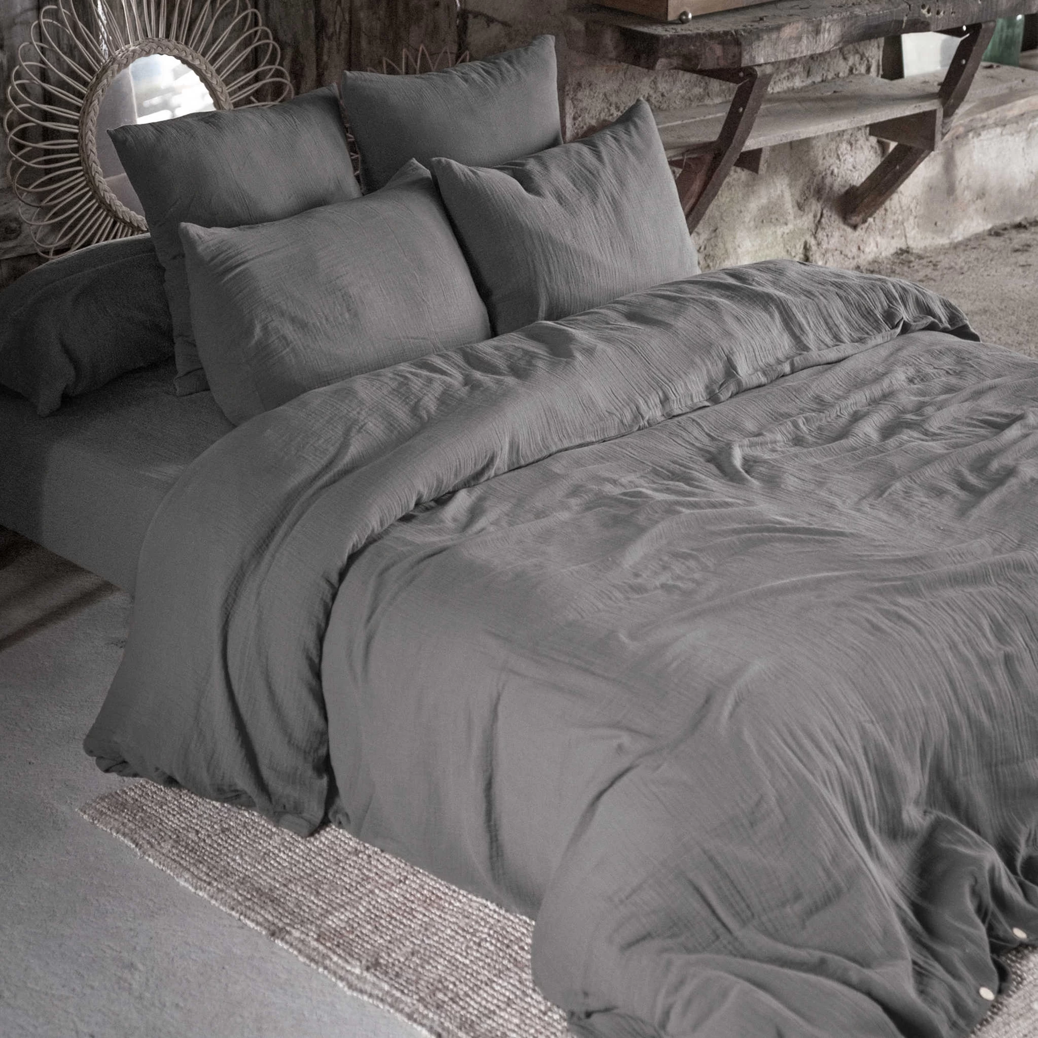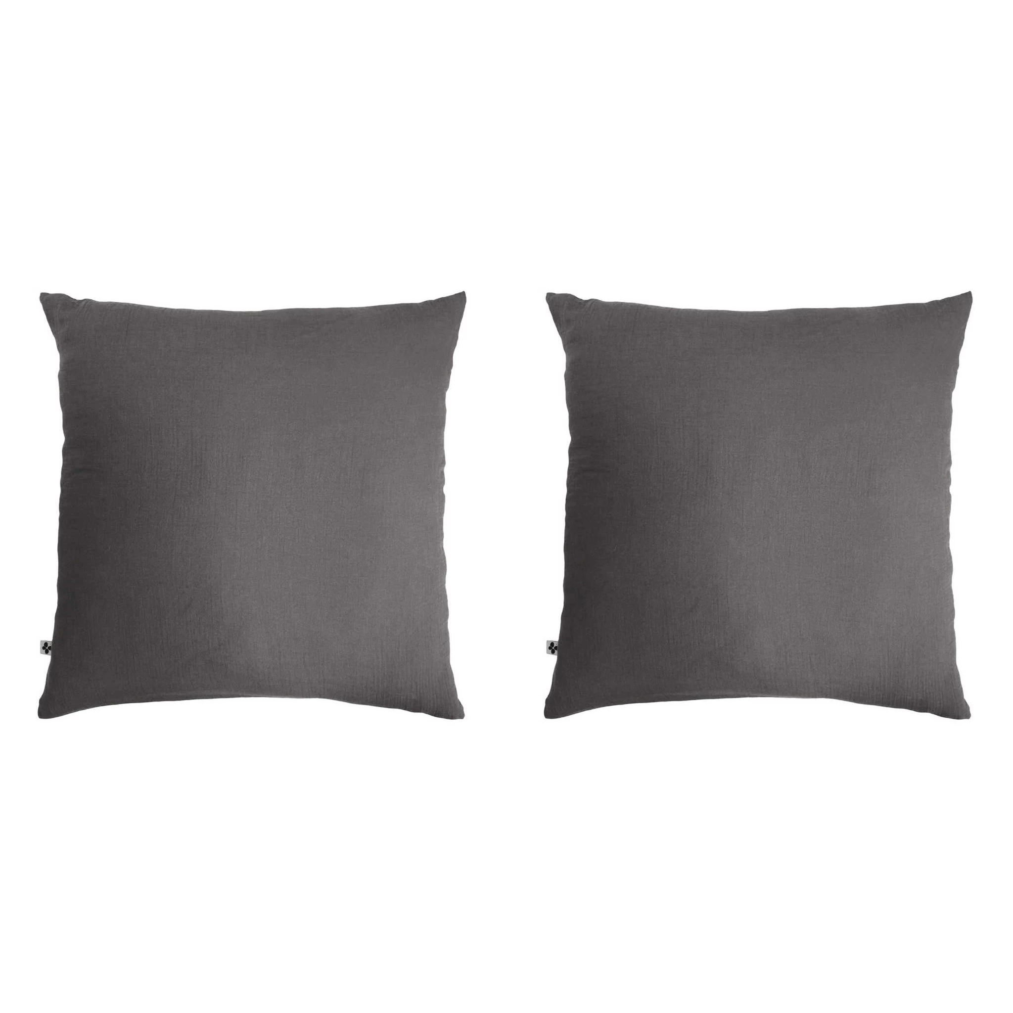 Lot de 2 taies d’oreillers double gaze de coton gris anthracite