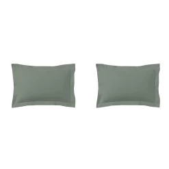 Lot de 2 taies d’oreillers vert de gris 100% coton