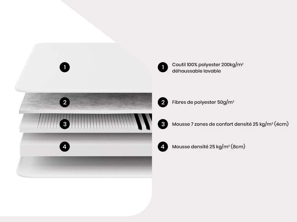 - Technologie matelas (densité) :