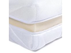 Matelas bébé réversible et déhoussable, housse lavable en machine à 40°C. Face été et face hiver plus chaude, pour un confort de bébé adapté toute l’année.