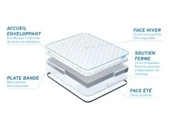 Maxi-Epaisseur/Aéré//Confort Visco/Ergonomique/Face été-Face Hiver/Mousse à mémoire de forme/Allègement des points de pression/Fabriqué en Europe/Indépendance de couchage