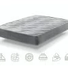 Le matelas offre un bon soutien et un confort adéquat. La couche de mousse à mémoire de forme comporte 9 zones différentes pour chaque partie du corps. Les matériaux utilisés sont innovants, il s’agit de mousse à mémoire de forme à structure cellulaire ouverte et de Waterfoam, un matériau écologique. Ce matelas a 18 cm de mousse d’eau de haute densité. Il s’agit d’une base indéformable qui garantit un excellent repos, à laquelle s’ajoute une bonne couche de 6.5 cm de mousse à mémoire de forme. Le rembourrage est hypoallergénique de 2 cm d’épaisseur. L’épaisseur totale du matelas est de 26.5 centimètres. Ce matelas peut supporter les poids les plus lourds.