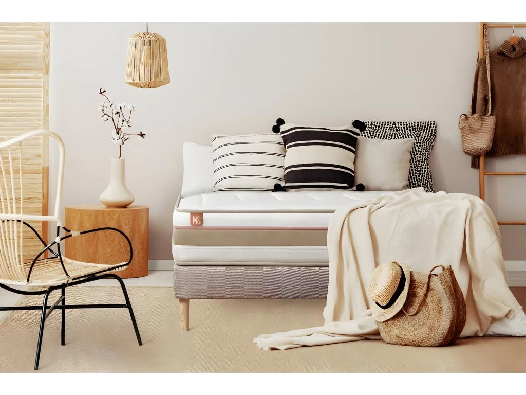 > Nombre de ressorts ensachés : 290 pour 80×190, 310 pour 80×200, 348 pour 90×190, 372 pour 90×200, 493 pour 120×190, 527 pour 120×200, 609 pour 140×190, 651 pour 140×200, 744 pour 160×200, 806 pour 180×200, 961 pour 200×200