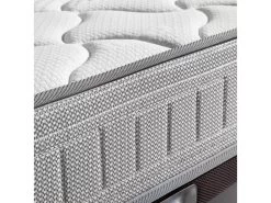 - Plateau supérieur composé de coutil stretch matelassé d’1 cm et de 2 cm de mémoire de forme de 65 kg/m3.