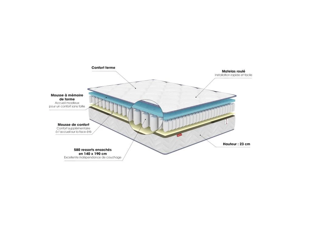 – Technologie : ressorts ensachés (580 ressorts en 140×190)