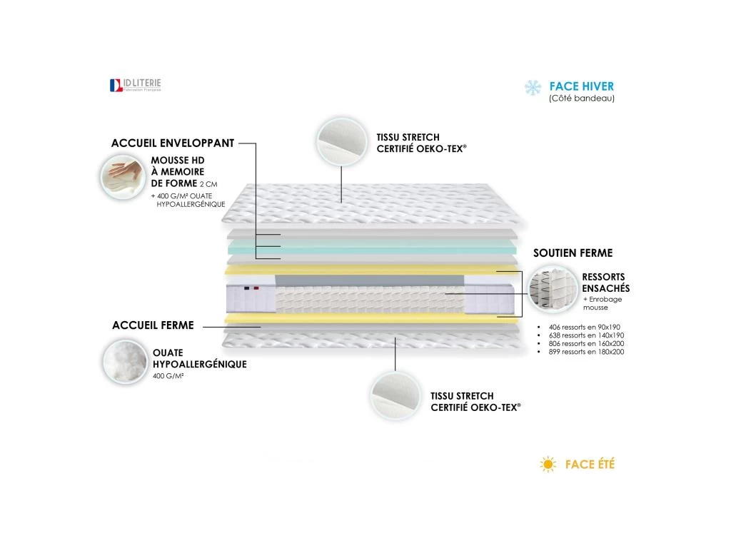 Ame : 392 ressorts ensachĂ©s en 90×190 / 616 ressorts ensachĂ©s en 140×190 / 780 ressorts ensachĂ©s en 160×200 / 870 ressorts ensachĂ©s en 180×200