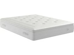 Matelas Simmons SW6 haut de gamme, disposant d’une face de couchage garnie de 6 cm de mousse à mémoire de forme pour un confort exceptionnel digne des grands hôtels. Ses matériaux nobles de garnissage (cachemire, lin, soie) viennent parfaire le tout, pour une épaisseur totale de 33 cm.