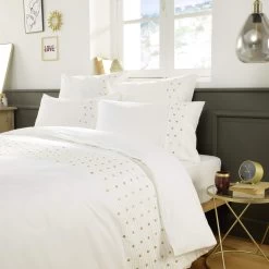 Composée en 100% coton (57 fils/cm²), cette parure de lit est