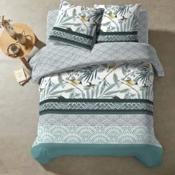 Avec un design Ă©purĂ© composĂ© de motifs floraux et de diverses formes gĂ©omĂ©triques, cette parure de lit Colibri Vert est ce qu’il y a de mieux en termes de modernitĂ©. Pour parfaire le tout, elle a Ă©tĂ© imaginĂ©e dans une couleur bleu canard.