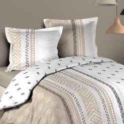 fils/cm², la parure de lit est disponible en 240×220 cm.