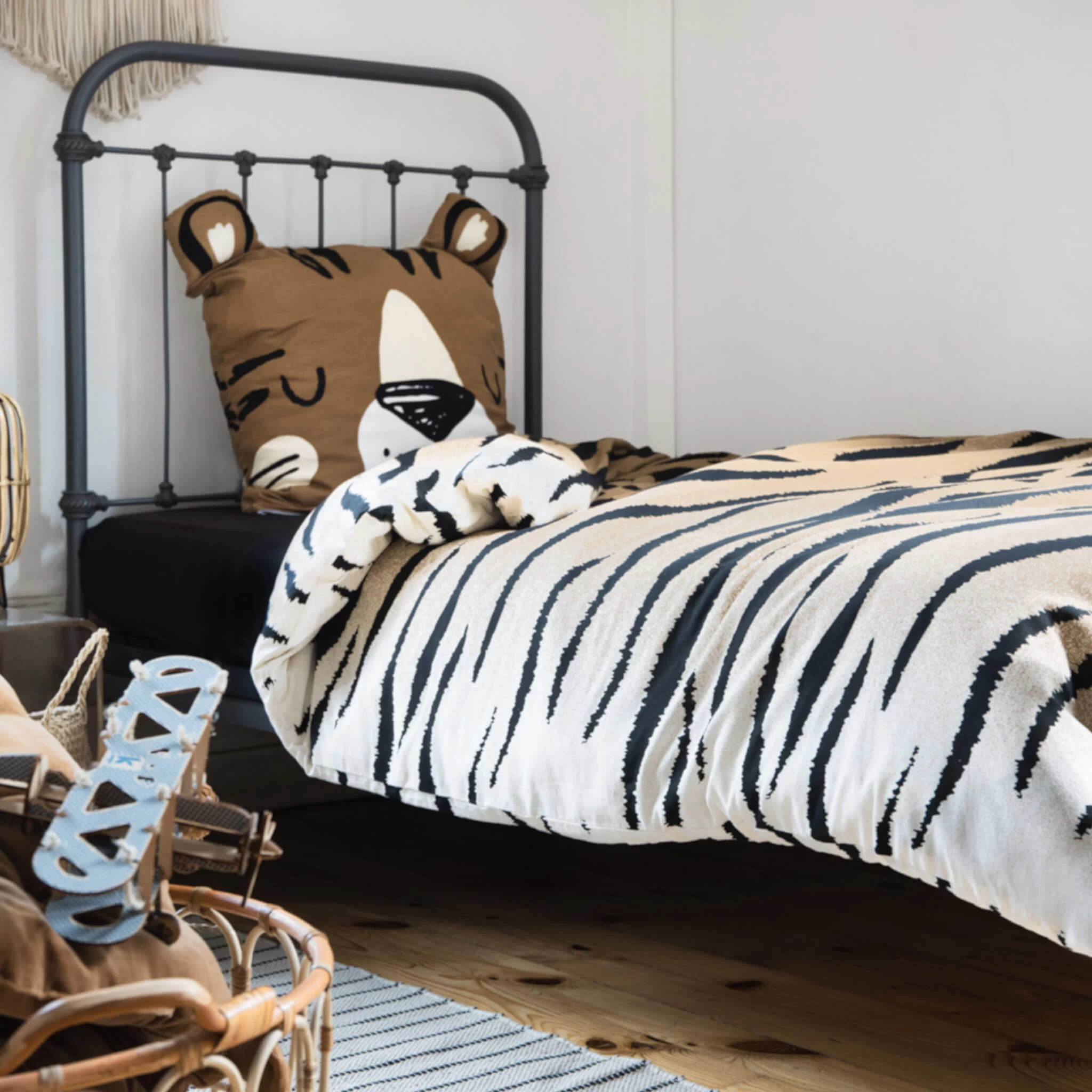 Découvrez la parure de lit enfant Diego, de la marque Terre de Nuit. Avec son imprimé animal, cette parure de lit ira à ravir dans la chambre à coucher de votre enfant et ajoutera un esprit savane au sein de la pièce.