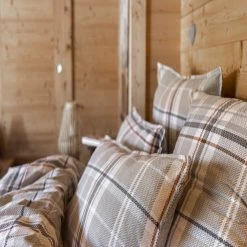 CĂ´tĂ© design, vous retrouverez un joli motif Ă carreaux simple avec comme coloris des nuances de gris et de beige. Cette parure de lit est disponible en plusieurs dimensions. Elle comprend la housse de couette finition boutons permettant un meilleur maintien de la couette tout au long de la nuit et 2 taies d’oreillers 63×63 cm assorties aux jolis motifs de la housse.