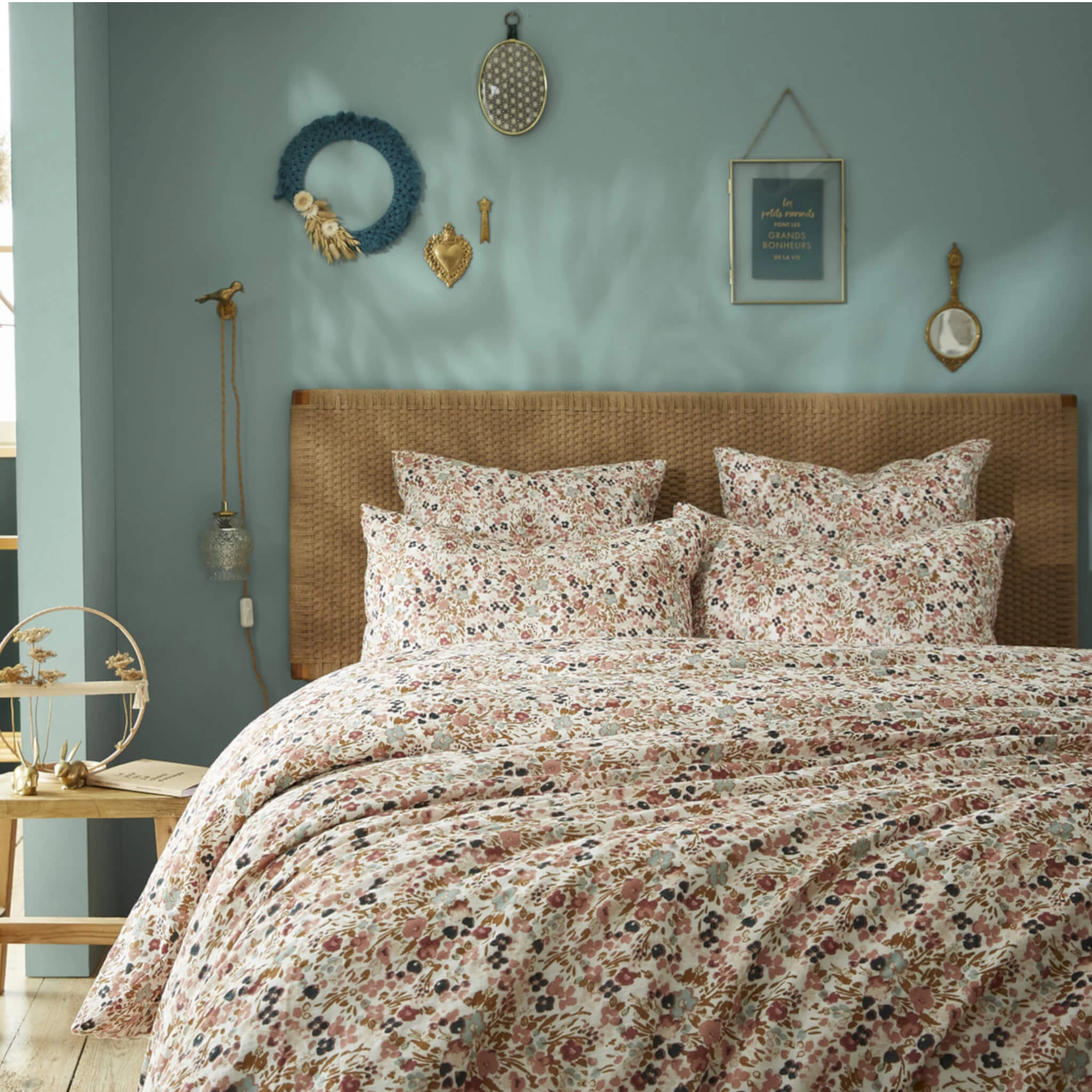 Parure de lit gaze de coton imprimĂ© floral rose – Terre de Nuit