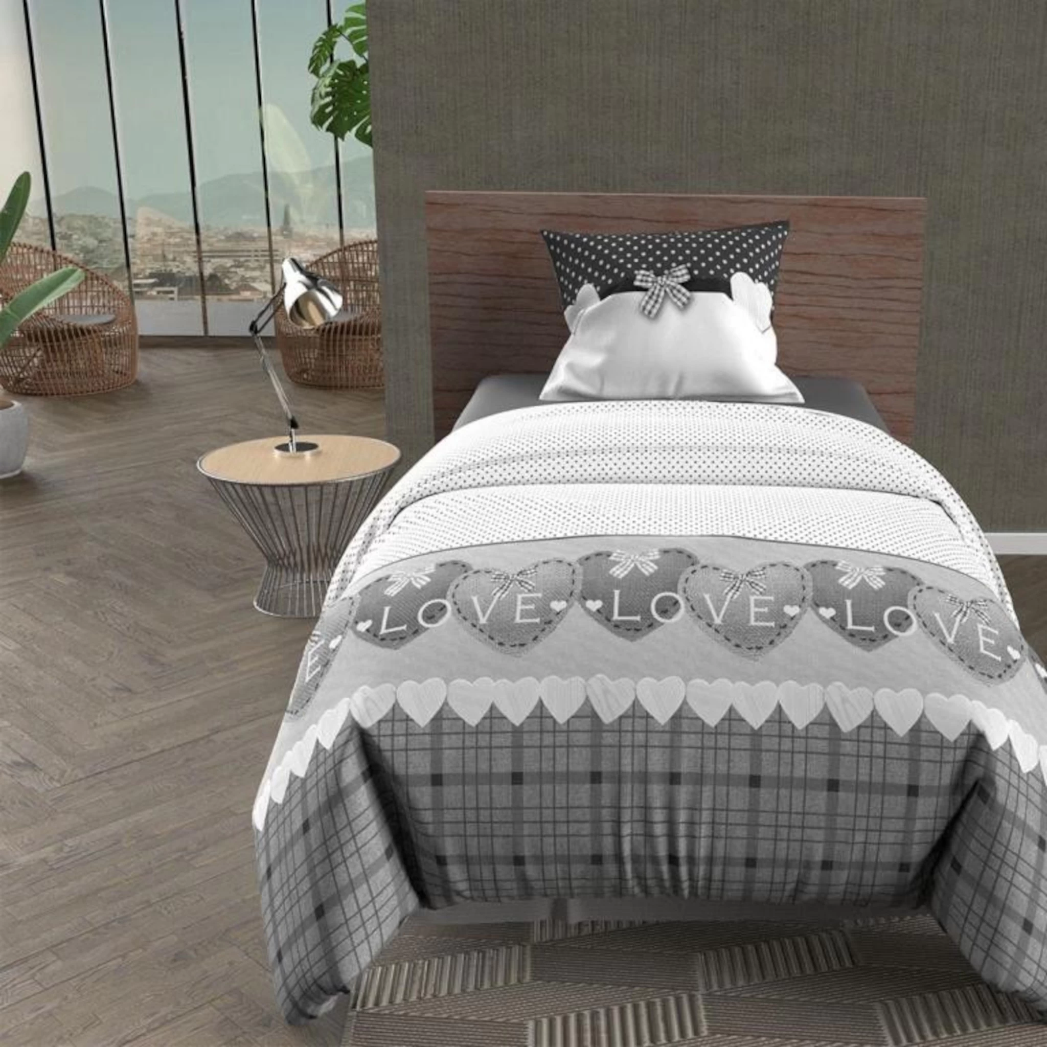 Parure de lit Love gris. Réelle