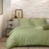 La parure de lit Alex kaki est disponible dans plusieurs dimensions. Elle se compose d’une housse de couette qui comporte un rabat de maintien de 37 cm aux pieds en forme de cheminĂ©e pour pouvoir y insĂ©rer la couette ainsi que 2 taies d’oreillers assorties 65×65 cm (une seule taie pour la taille 140×200).