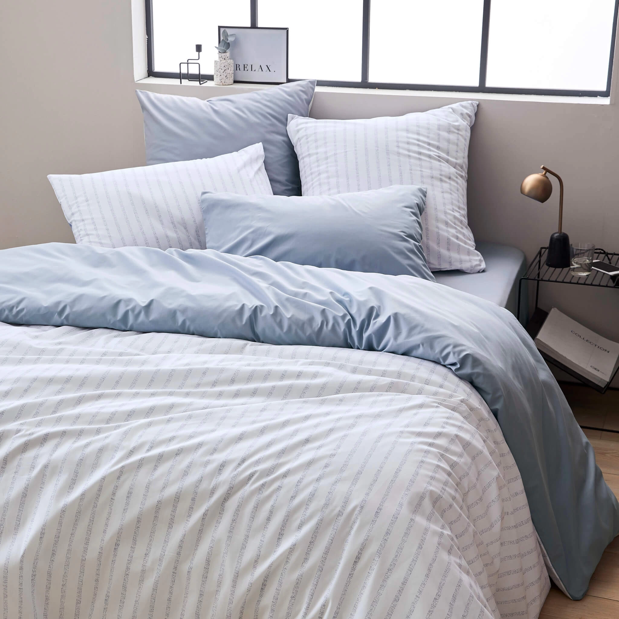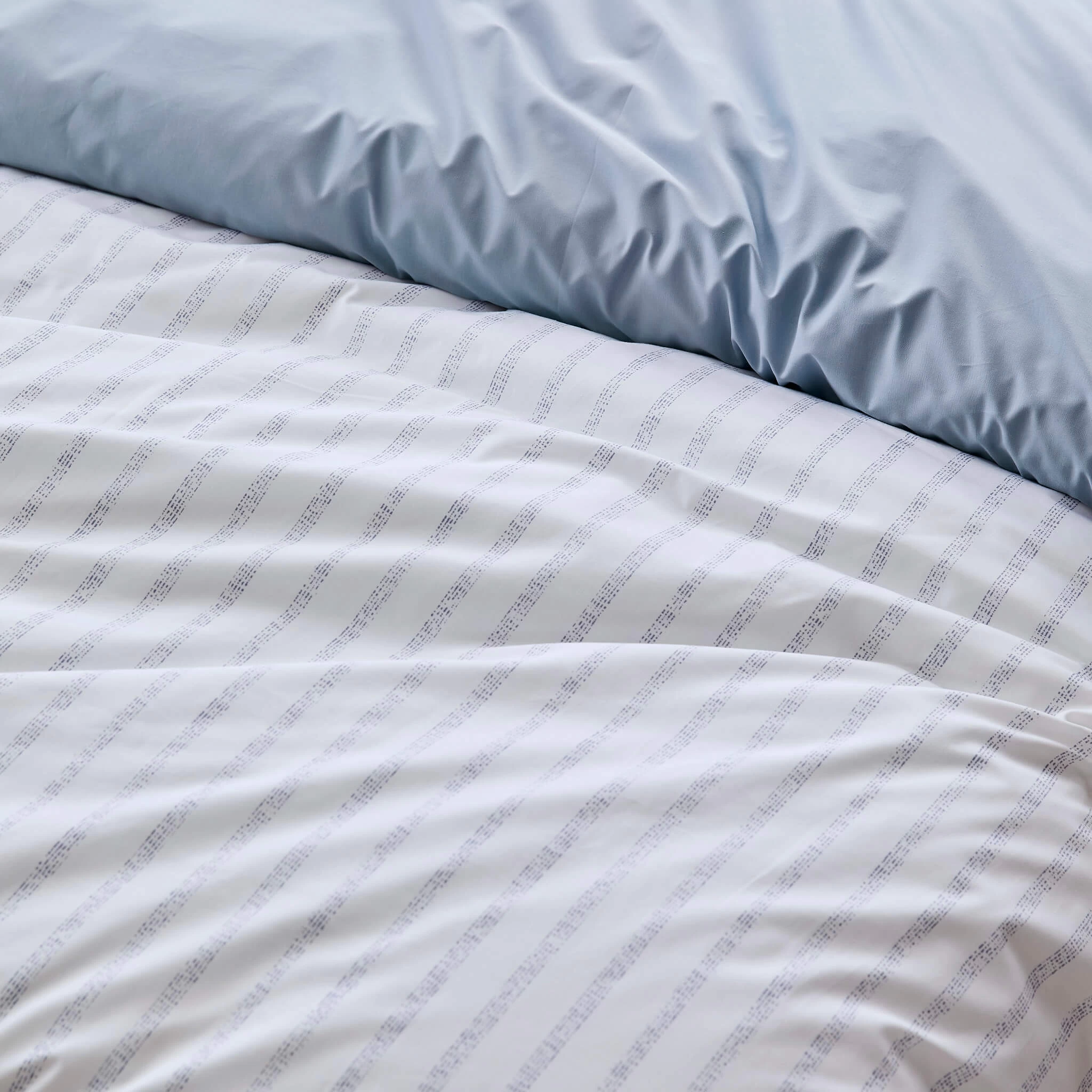 Parure de lit percale Gaby baltique – Tradilinge. La parure de lit Gaby baltique de la marque Tradilinge est un rĂ©el atout pour parfaire la dĂ©coration de votre chambre. En effet, elle prĂ©sente un motif très moderne et Ă©lĂ©gant avec de dĂ©licates rayures bleues sur fond blanc.