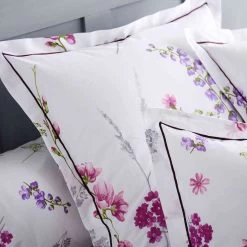 Parure de lit Tradilinge pretty tissée en fibres longues 100% coton. Grâce à son tissage serré de 57 fils/cm2, cette parure assurera douceur et bien-être. Très tendance, son imprimé fleuri printanier dans les tons roses vient parfaire la décoration de votre chambre et apportera originalité et raffinement. La housse de couette comporte un rabat de maintien de 37 cm aux pieds en forme de cheminée pour pouvoir y insérer la couette.