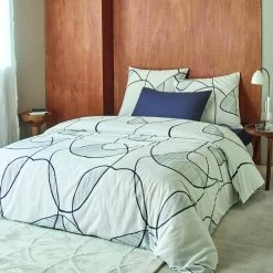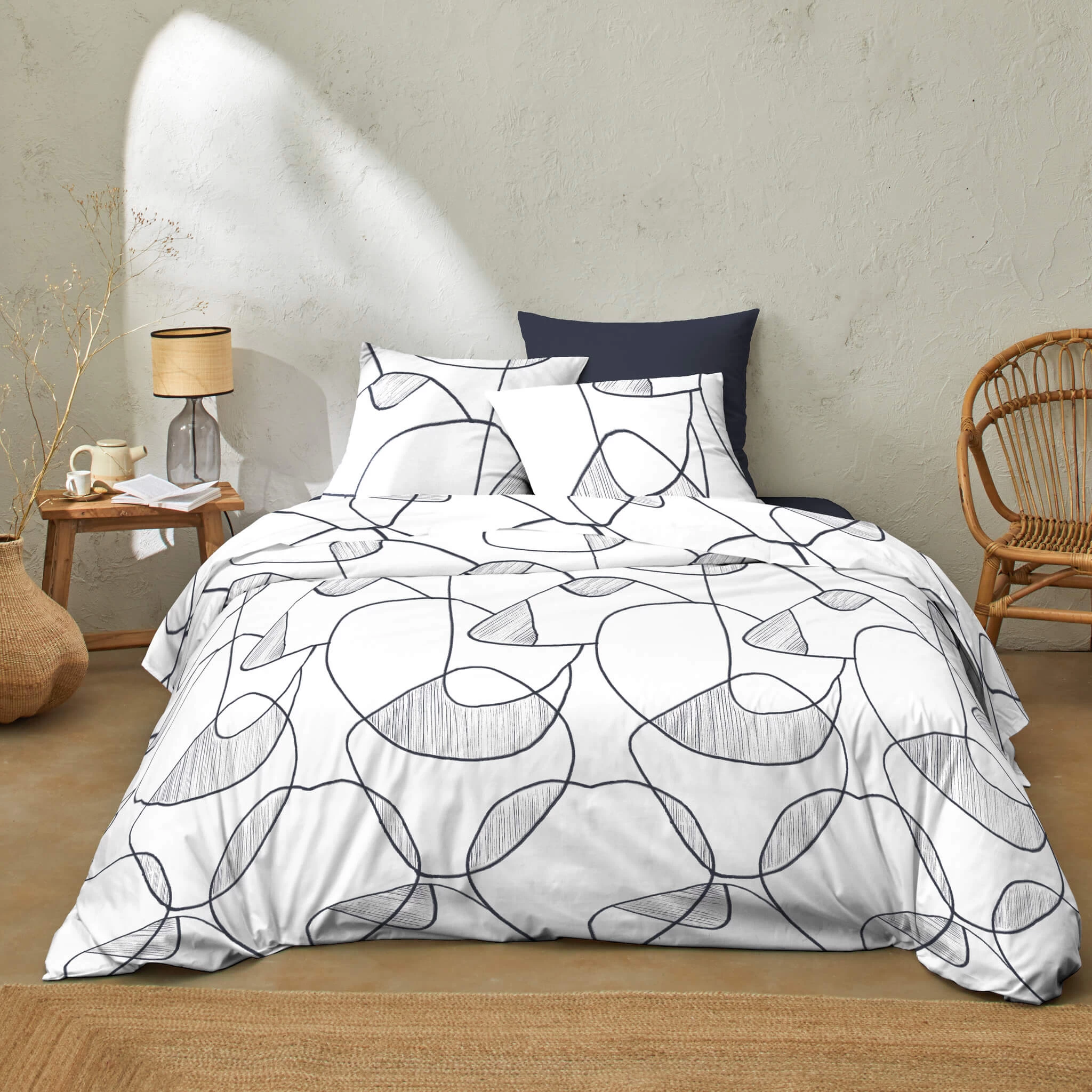 DĂ©couvrez la parure de lit Rolling, de la marque Terre de Nuit. Un magnifique imprimĂ© gĂ©omĂ©trique simple et tendance qui rendra votre chambre Ă coucher contemporaine. Sur un fond blanc pur, de jolies formes abstraites s’Ă©tendent tout le long de la housse de couette et des taies d’oreillers. Cette parure apportera la touche finale Ă votre dĂ©coration et s’adaptera parfaitement Ă tous types d’univers.