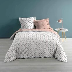 fils/cm², la parure de lit est disponible en 240×220 cm.