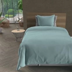 oreillers. Grâce à son coloris uni tendance bleu céladon,
