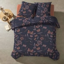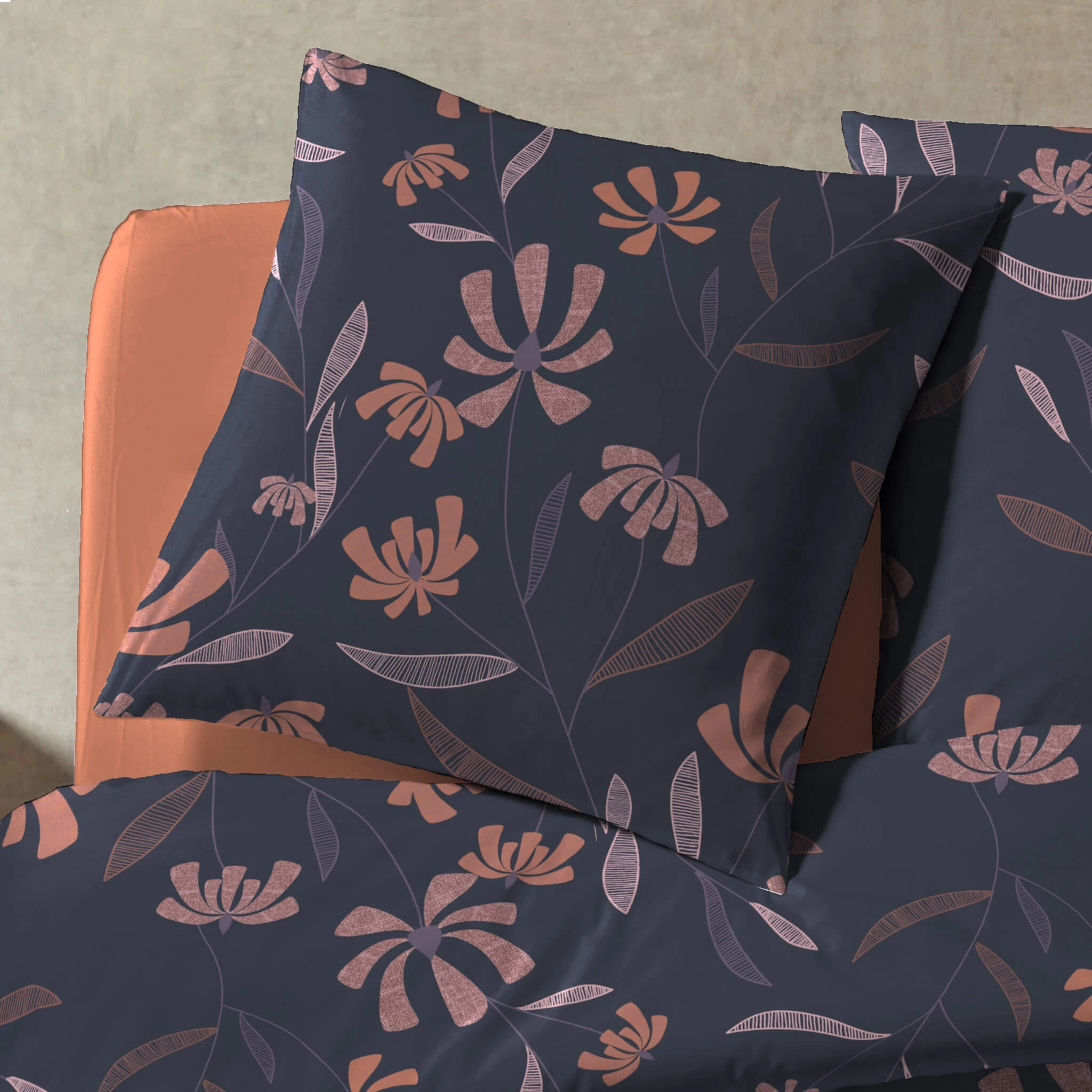 DĂ©couvrez la parure de lit Zaz terracotta, de la marque Terre de Nuit. Laissez vous tenter par l’originalitĂ© de cette merveilleuse parure de lit. La complĂ©mentaritĂ© des fleurs de couleur terracotta et du fond bleu marine assurera une chambre vivante et chaleureuse.Â