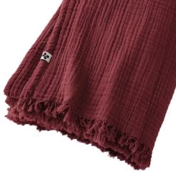 Plaid gaze de coton Ă franges bordeaux