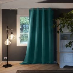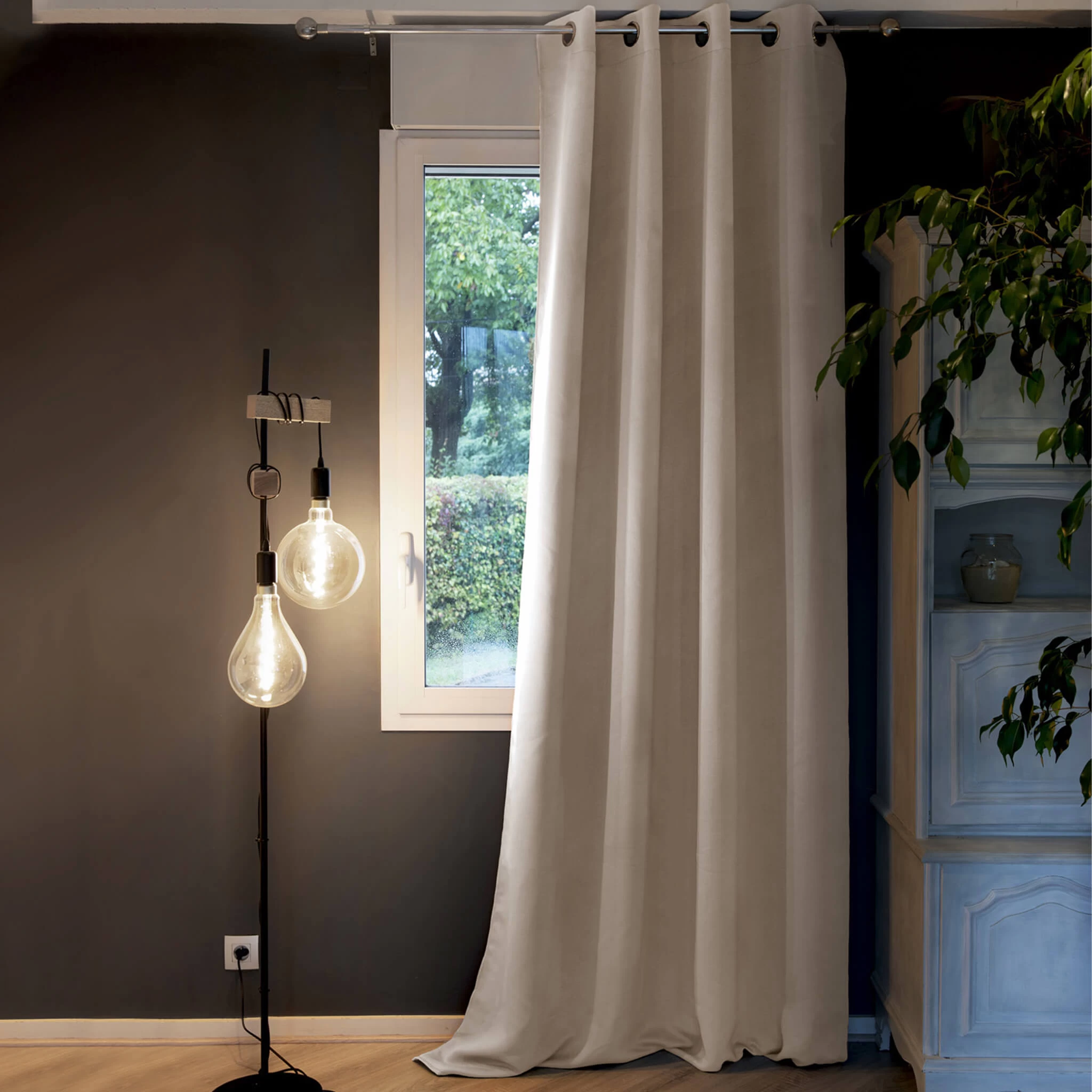 Rideau occultant thermique à œillets 140×280 cm. Ce rideau en 100% polyester vient sublimer votre décoration d’intérieur tout en légèreté et en douceur. Un atout de décoration tendance et moderne à la fois occultant, il permet de conserver votre intimité et d’empêcher la lumière de s’infiltrer dans votre intérieur, et isolant, il protège efficacement votre pièce contre le froid ou la chaleur de l’extérieur grâce à une doublure en polaire isolante pour limiter les déperditions thermiques au niveau de vos fenêtres. Pour un effet occultant maximum nous vous conseillons de privilégier les couleurs foncées.