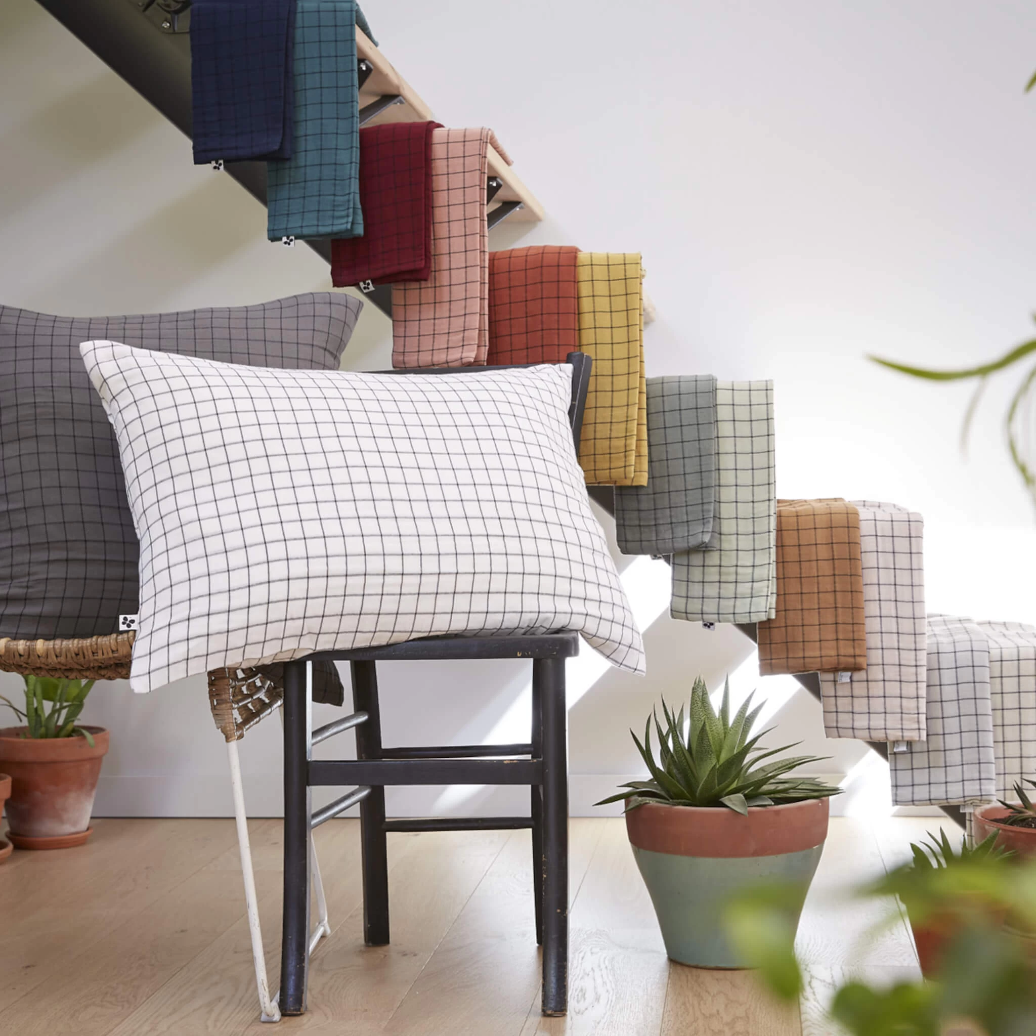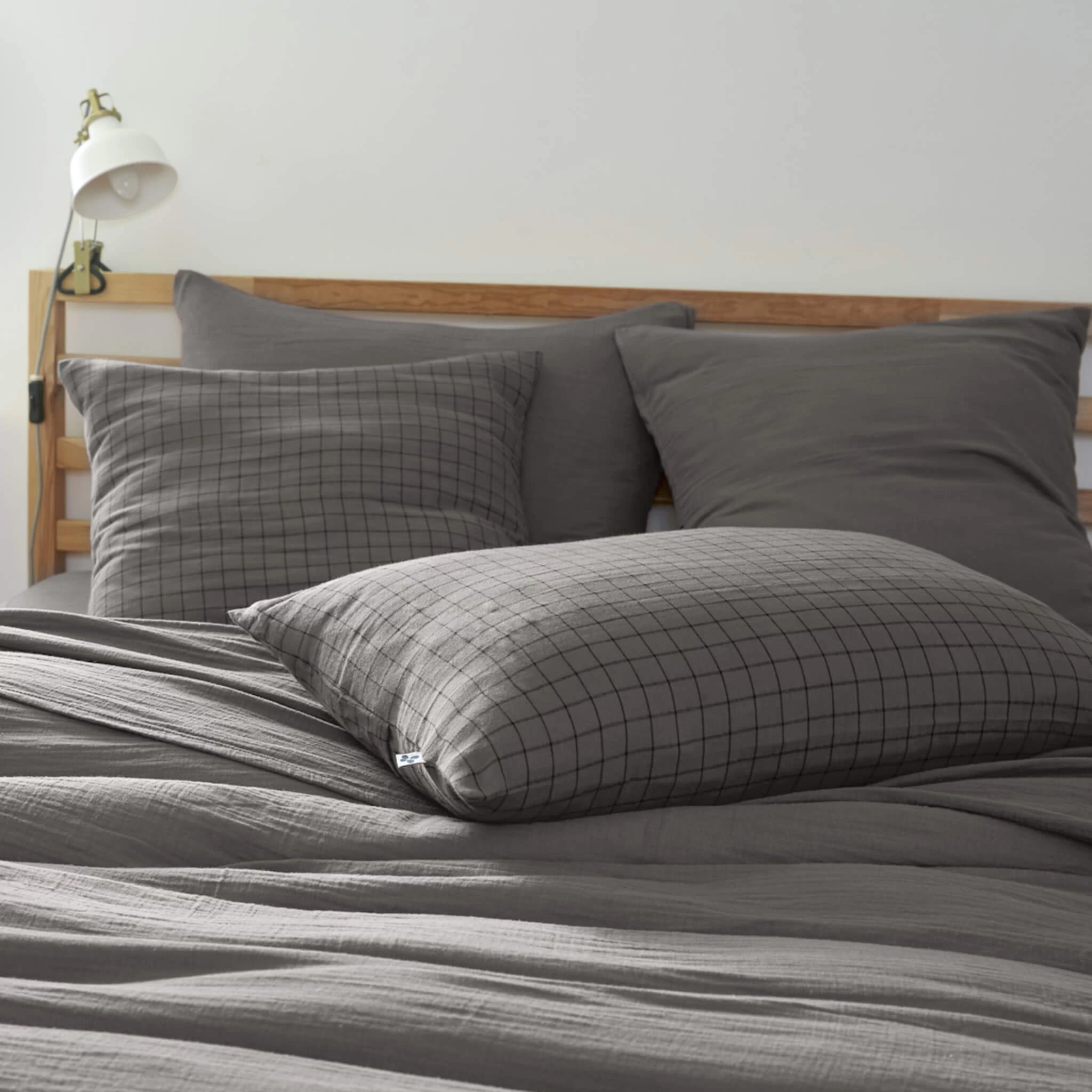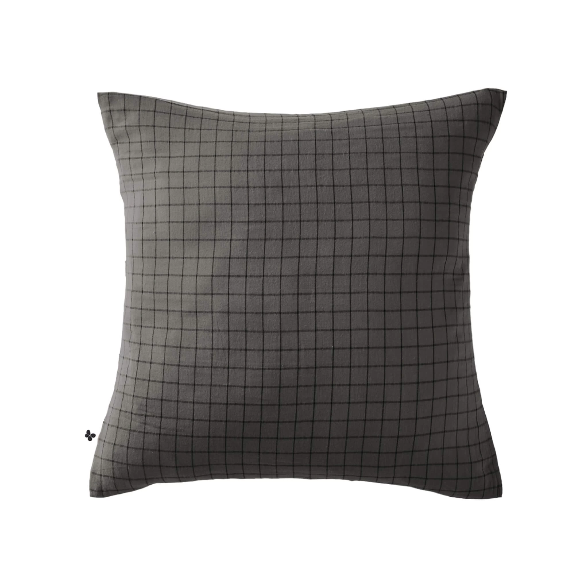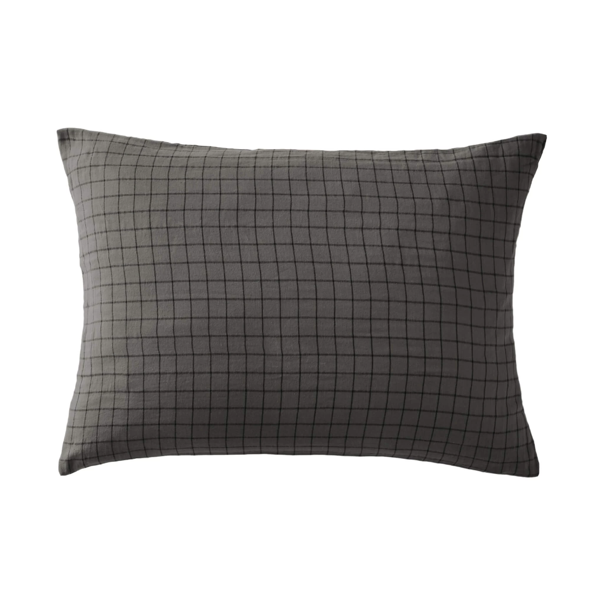 Taie d’oreiller Ă carreaux double gaze de coton anthracite