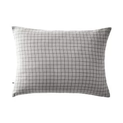 Taie d’oreiller Ă carreaux double gaze de coton gris