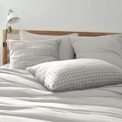 Taie d’oreiller Ă carreaux double gaze de coton gris