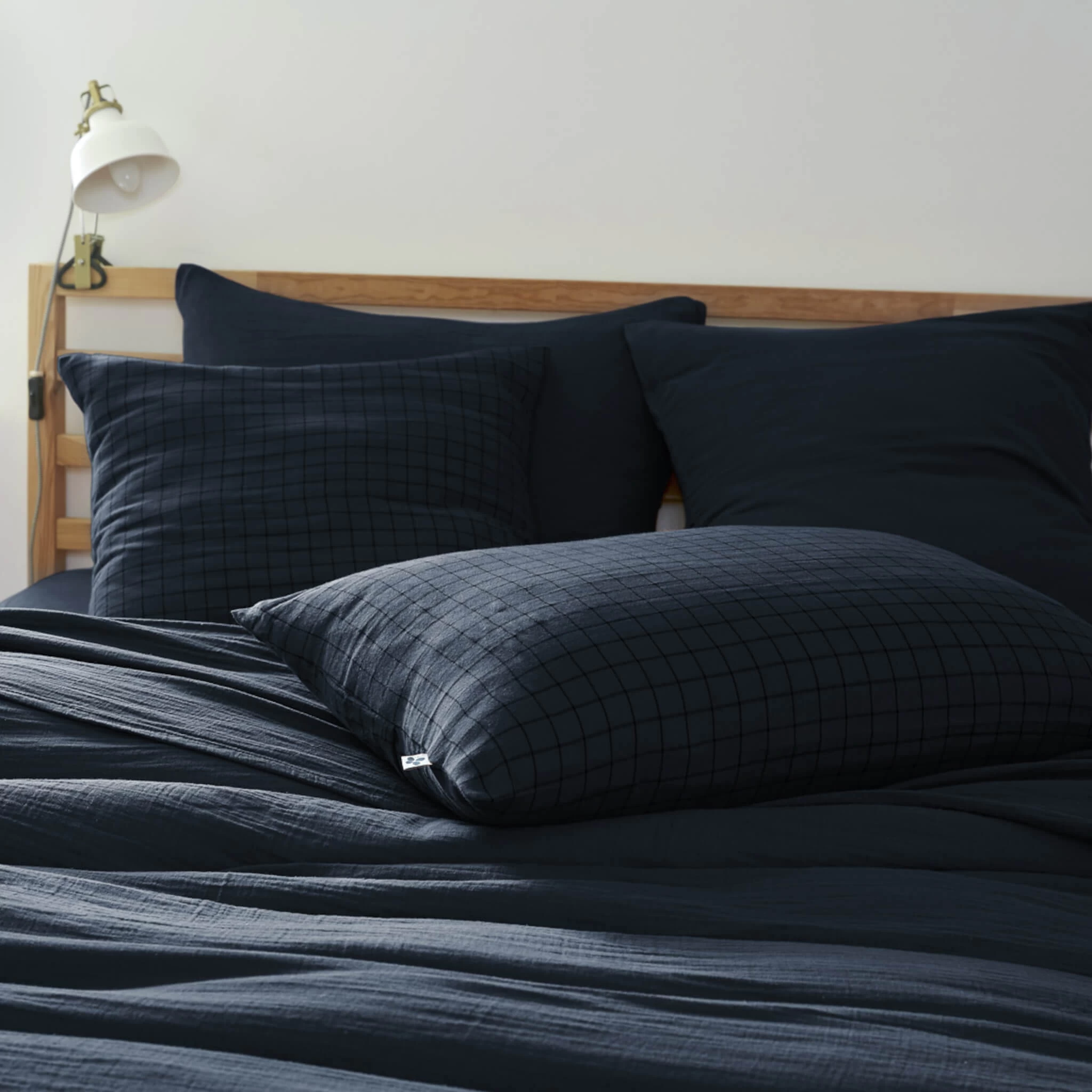 Taie d’oreiller Ă carreaux double gaze de coton marine