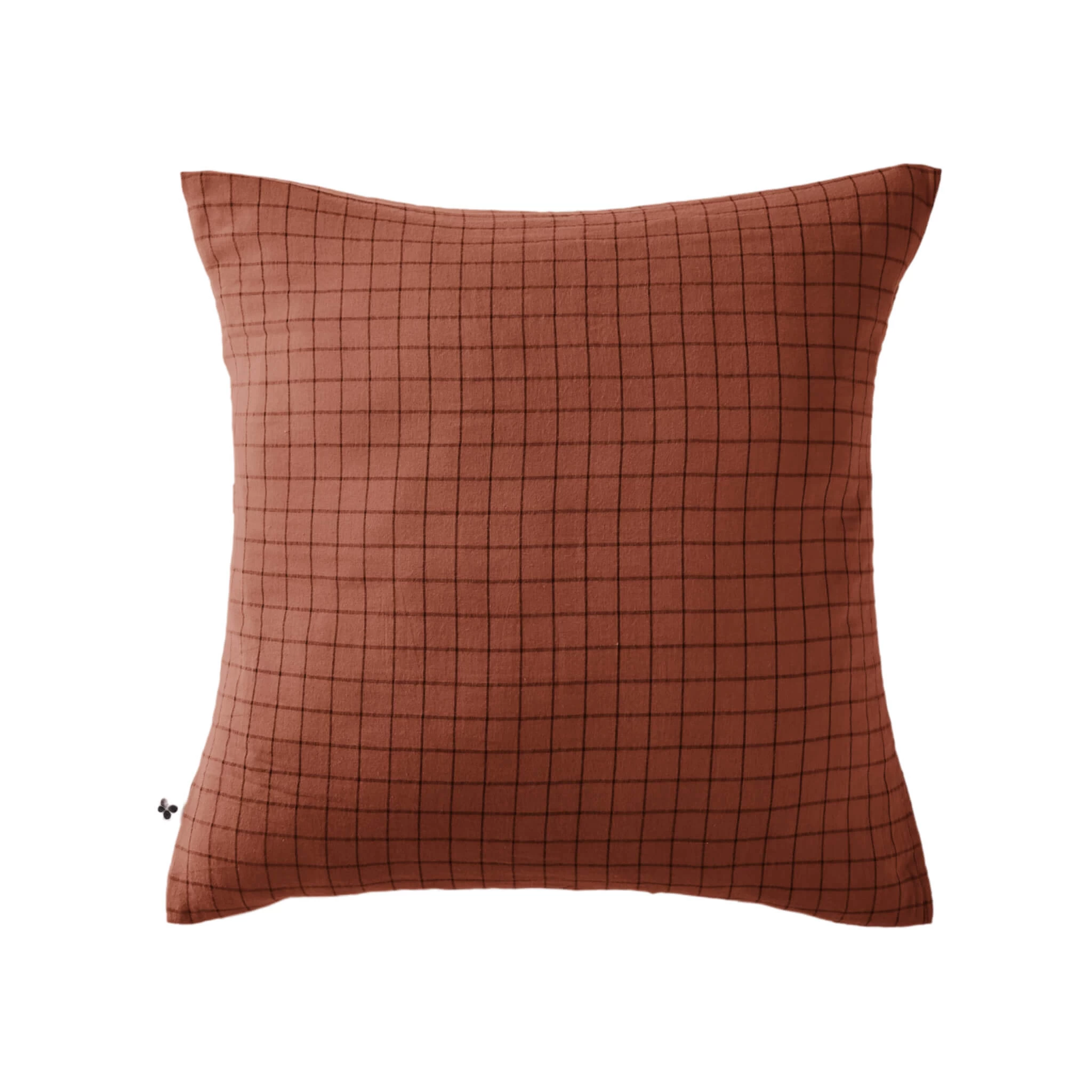 Taie d’oreiller Ă carreaux double gaze de coton orange