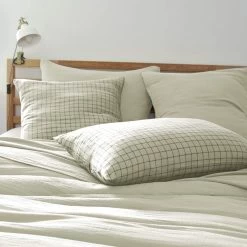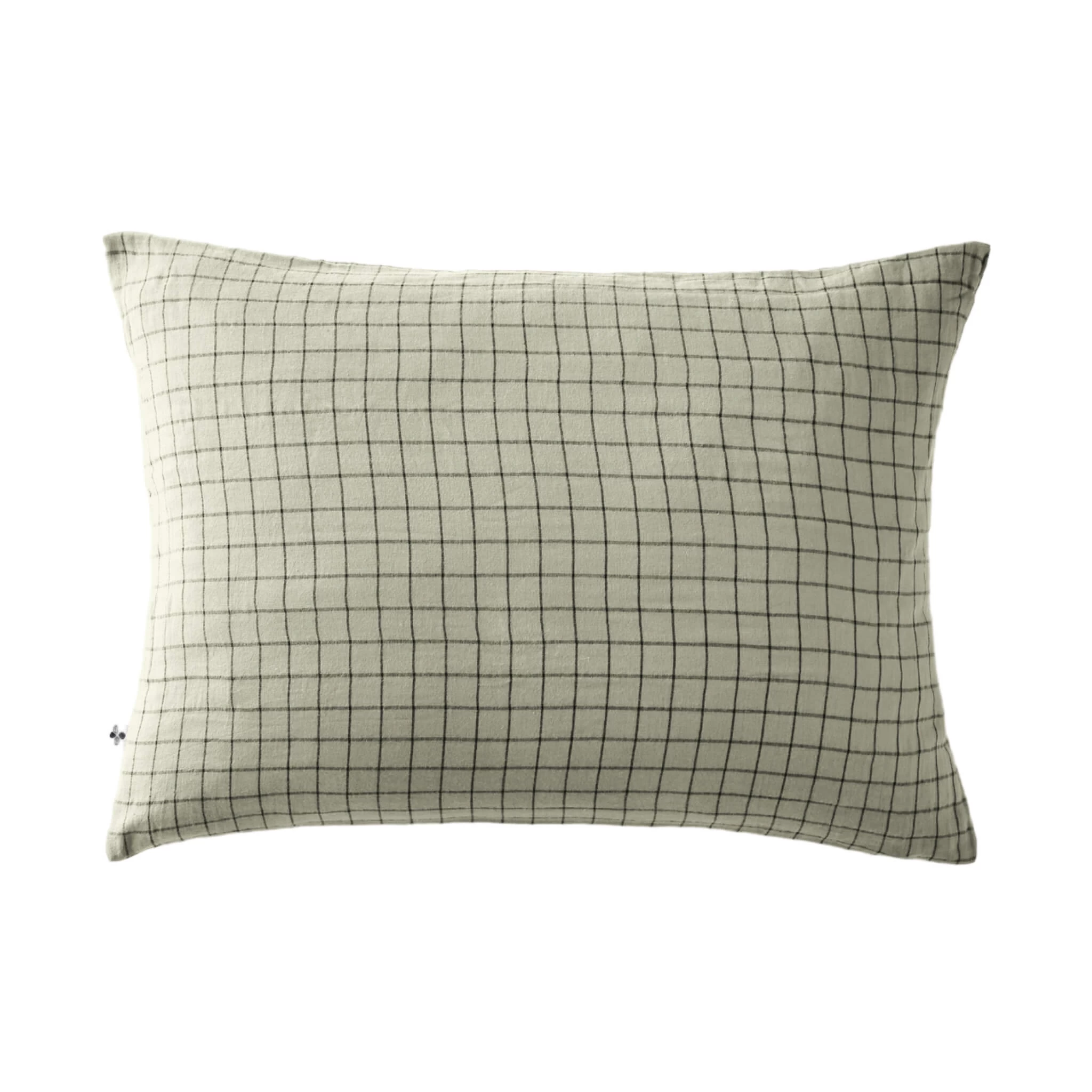 Taie d’oreiller Ă carreaux double gaze de coton vert d’eau